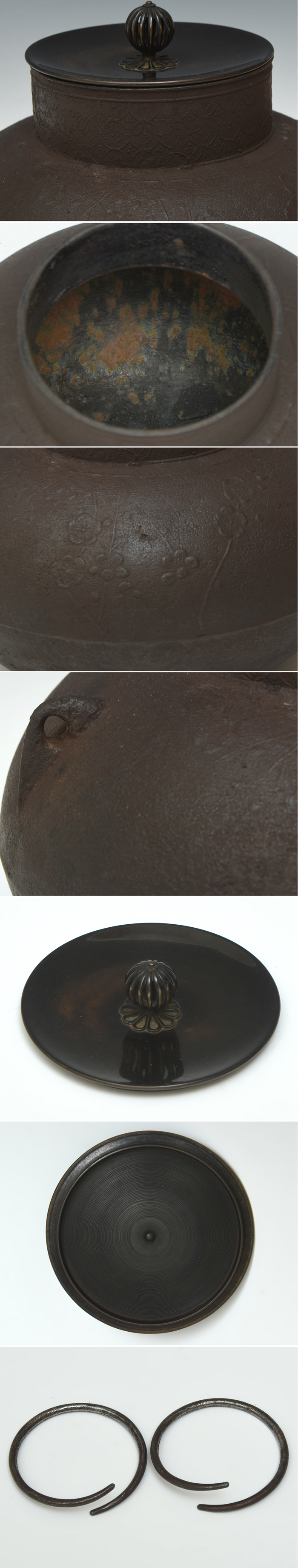釜師 畠春斎(造)竹梅地紋 甑口釜 釜鐶 共箱 茶釜 茶道具 金属工芸 茶湯窯 鉄釜 |