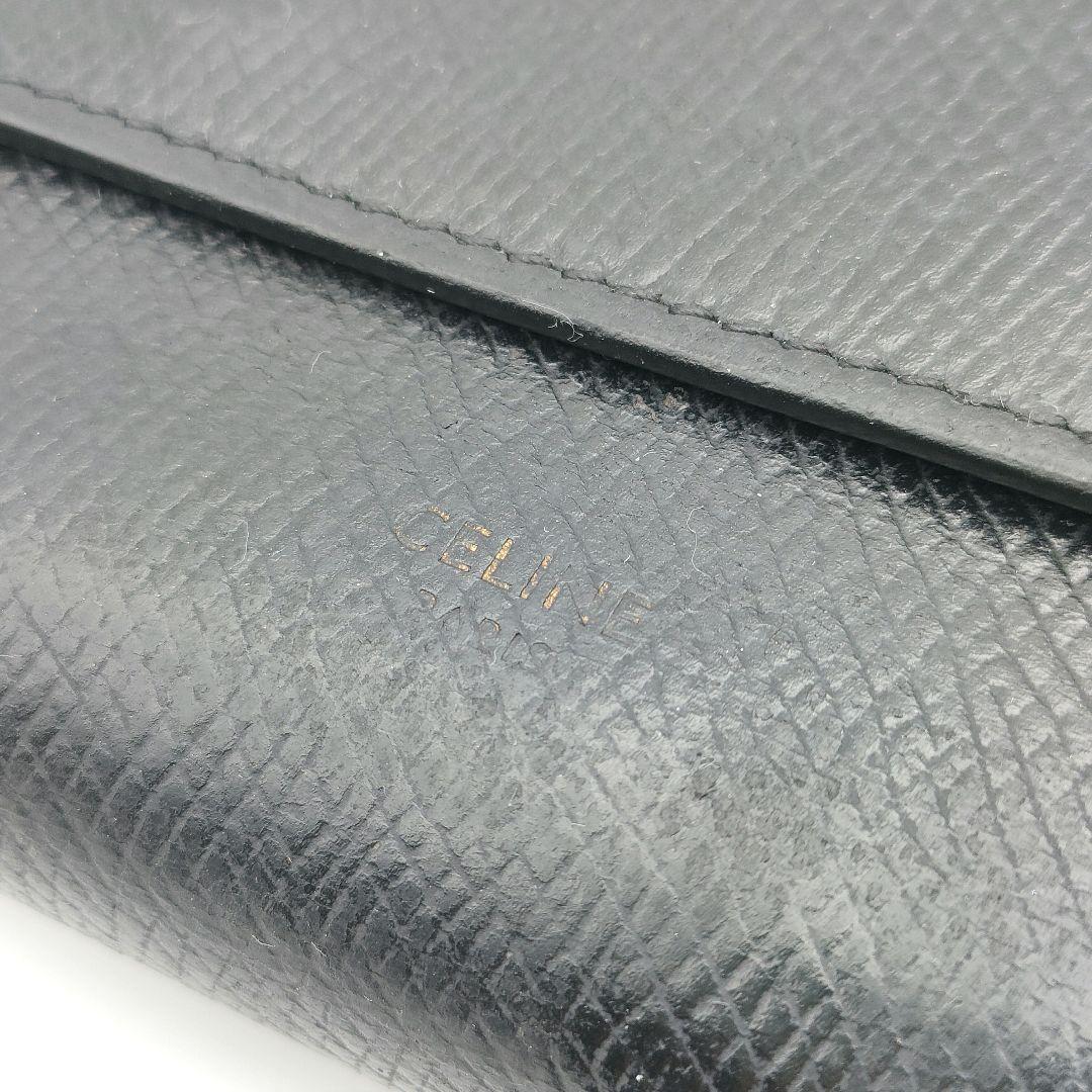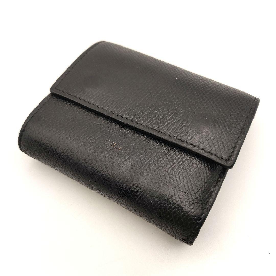 CELINE セリーヌ ロゴ レザー 三つ折り 財布 コンパクト ブラック 黒.