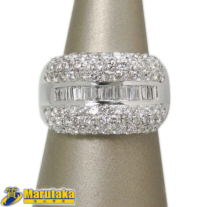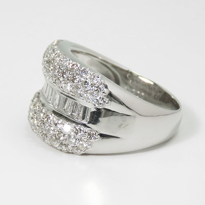 商品名 | 【Pt900 ダイヤモンド リング】14号 鑑別書付 指輪 プラチナ ダイヤ合計2.05ct ジュエリー 幅広 豪華 見栄えする 中古 23k185-1 |