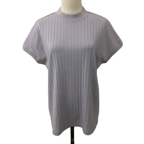 コーエン coen Tシャツ ニット ハイネック プルオーバー 無地 リブ フレンチスリーブ 半袖 LARGE 紫 パープル レディース