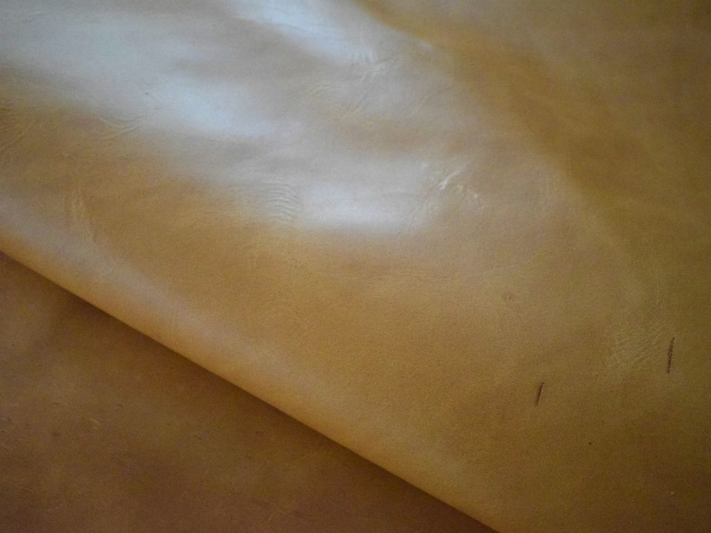 カラーはキャメル、厚みは1.2mm程、扱いやすいスムースレザー。