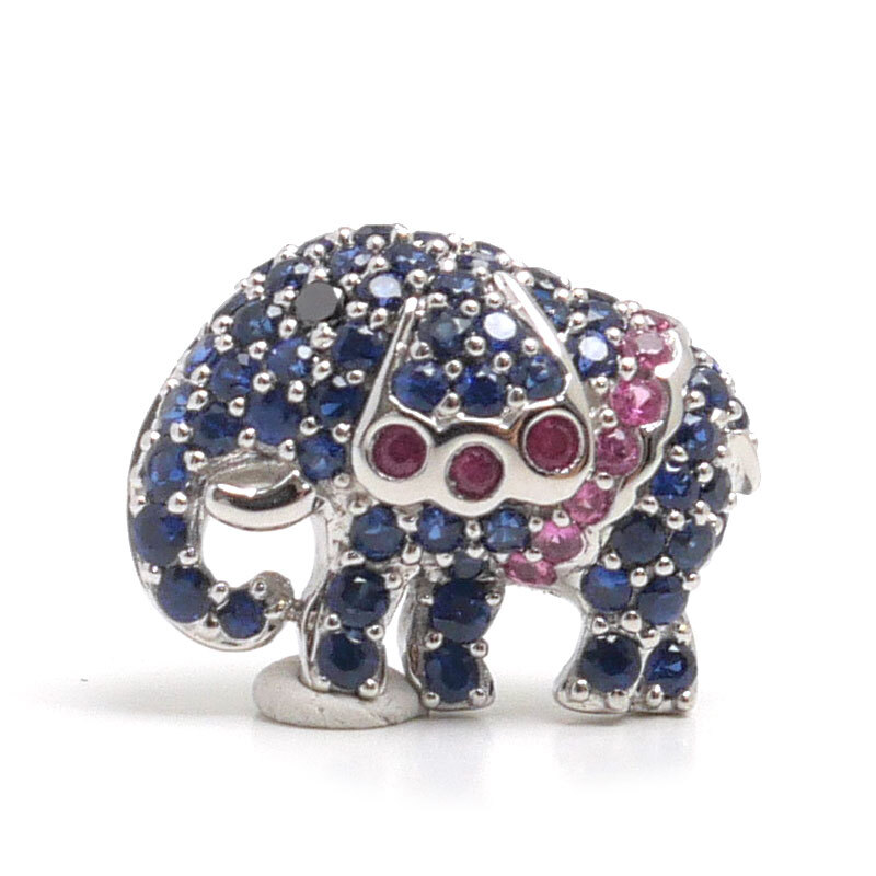 ・ブルーとピンクがサファイア、濃いピンクがルビー、目部分がブラックダイヤです。使用の際に気になるダメージのない綺麗なお品物となります。