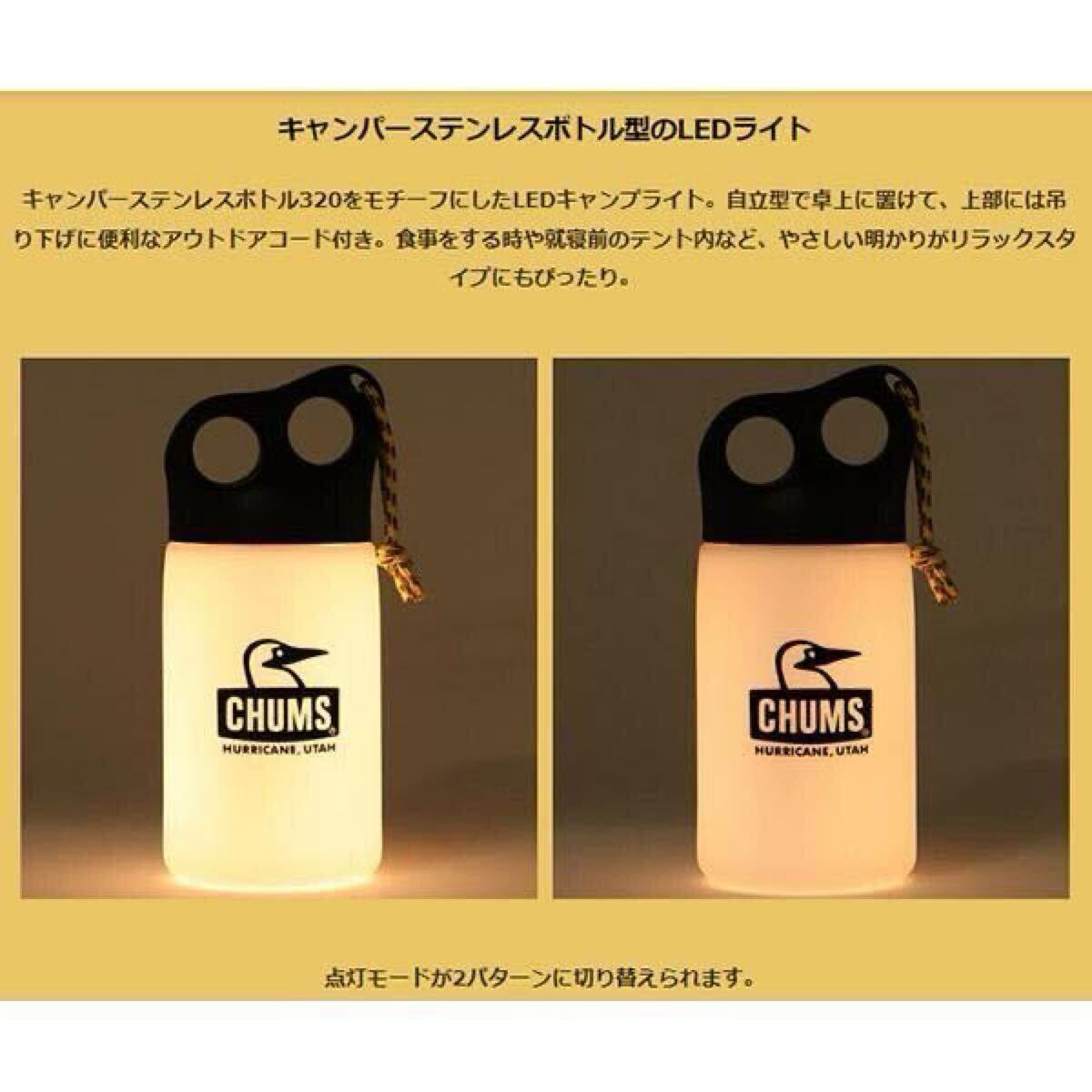 CHUMS チャムス キャンパーボトル LEDライト 照明 ステンレスボトル風 ランタン アウトドア キャンプ キャンプライト