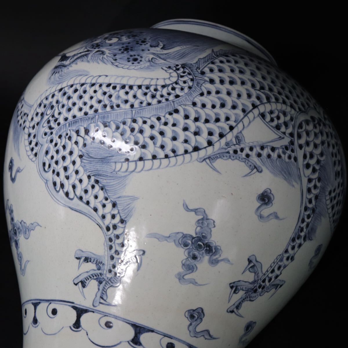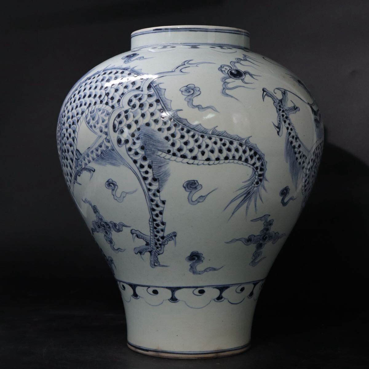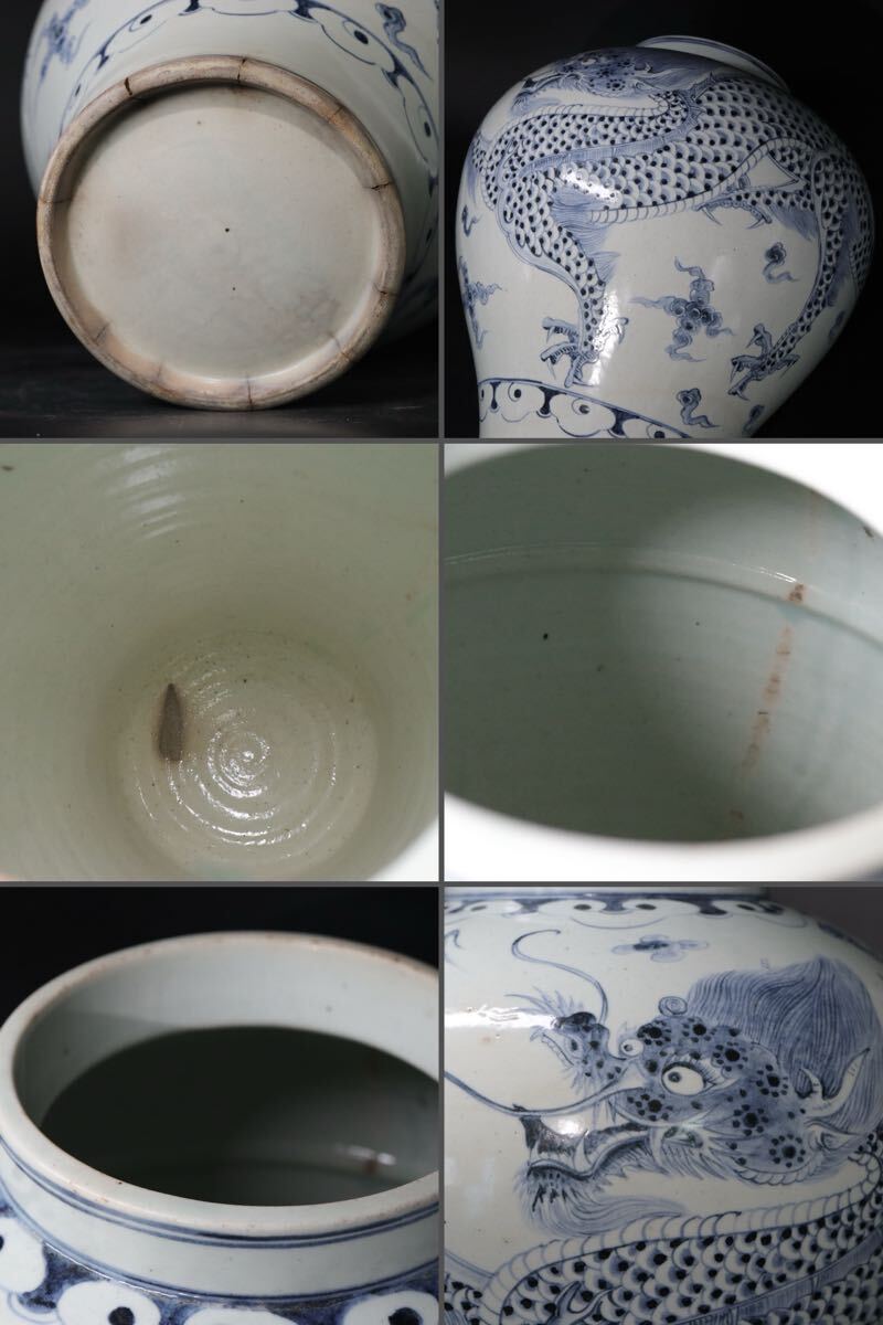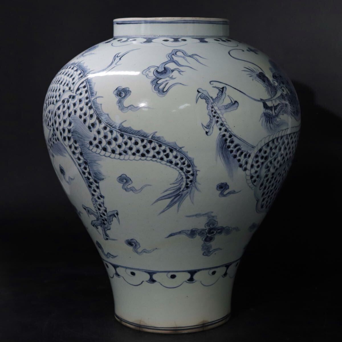 | 李朝 染付 龍図 大花瓶 梅瓶 全高約47cm/ 朝鮮古美術 青花 民画 花瓶 壺 検索: 分院 金沙里 .B660 |