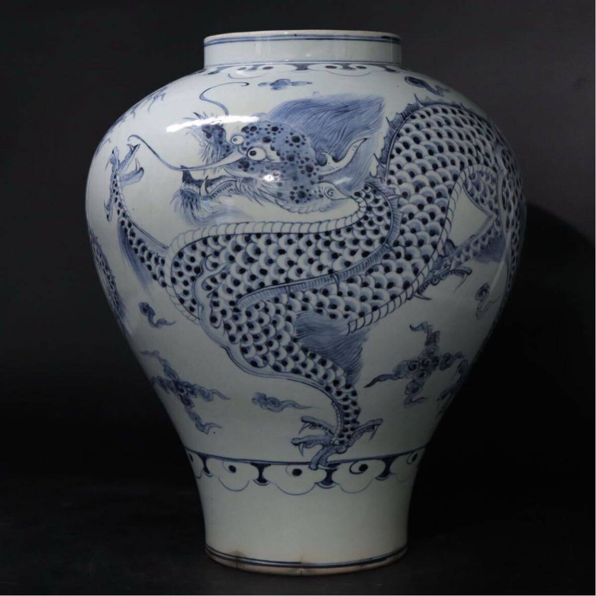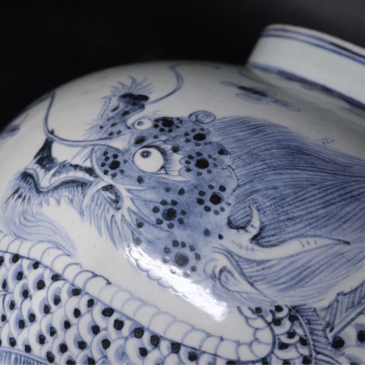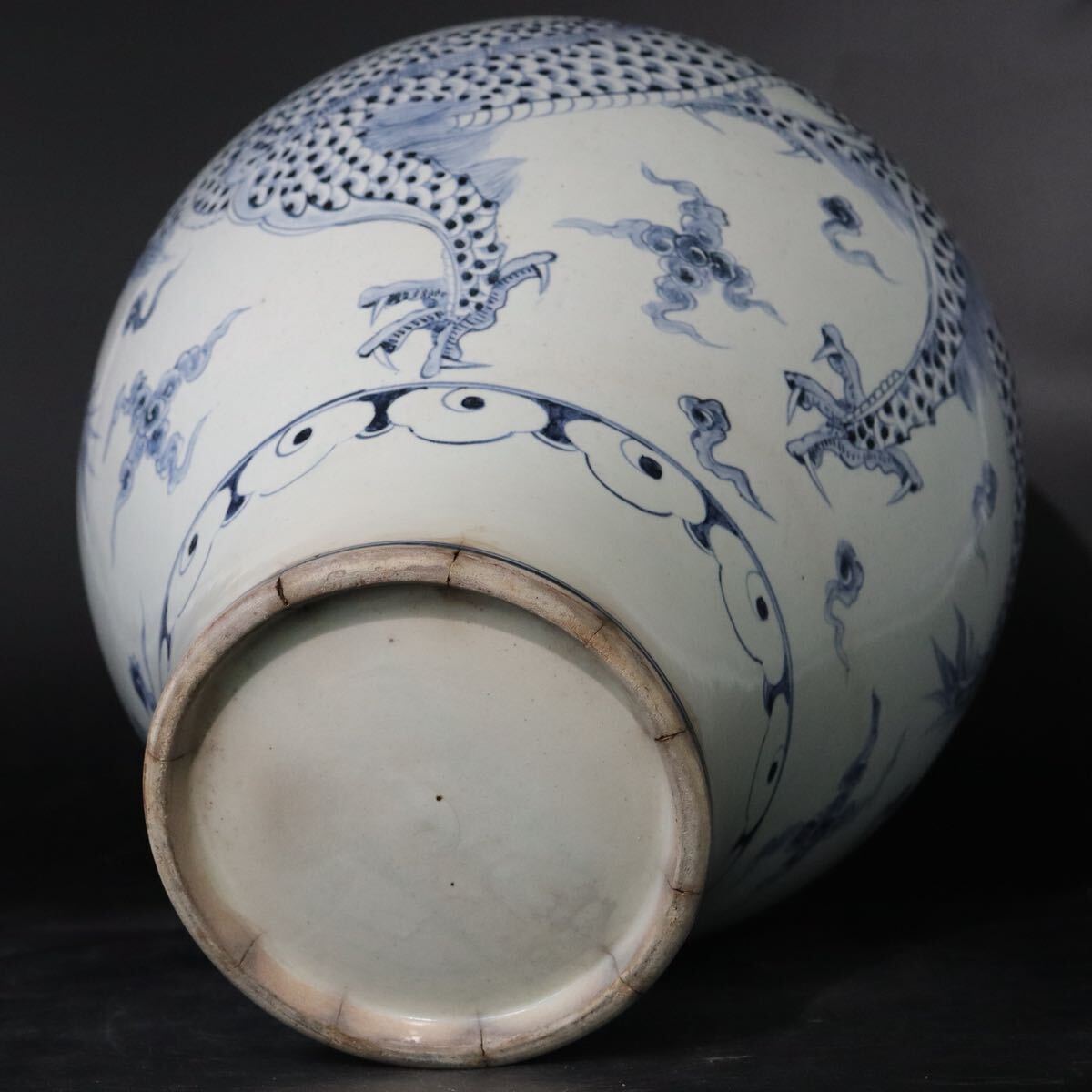 | 李朝 染付 龍図 大花瓶 梅瓶 全高約47cm/ 朝鮮古美術 青花 民画 花瓶 壺 検索: 分院 金沙里 .B660 |
