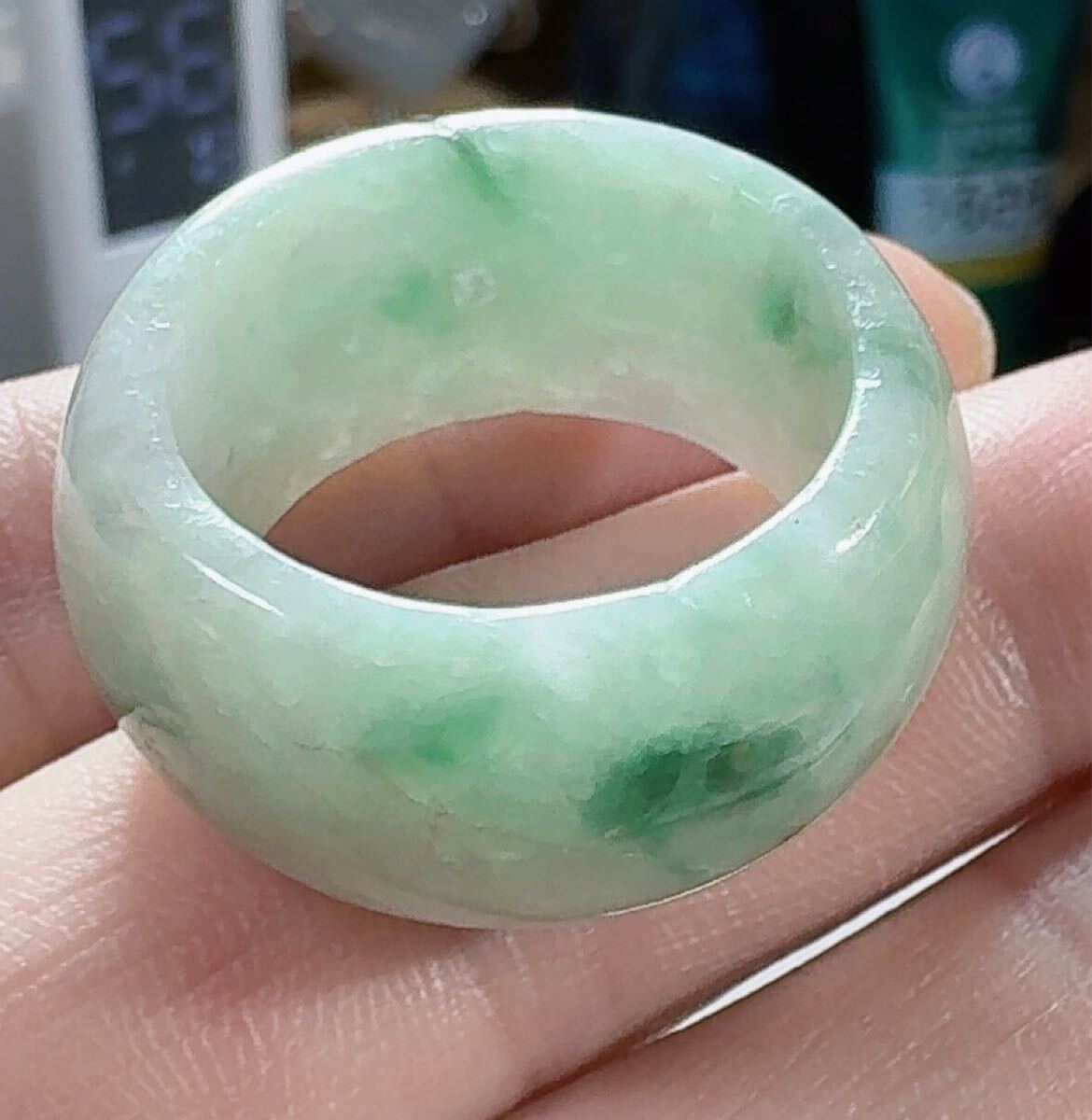 R2-0222天然翡翠《本物保証》 天然石 指輪 約22~23号 翡翠リング 一点物 縁起物 御守り 魔除け 昇進 成功 風水 金運 財運 幸運 幸福 パワーストーン