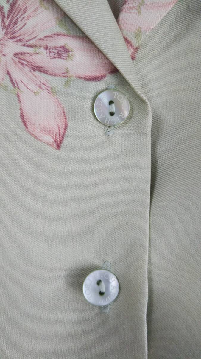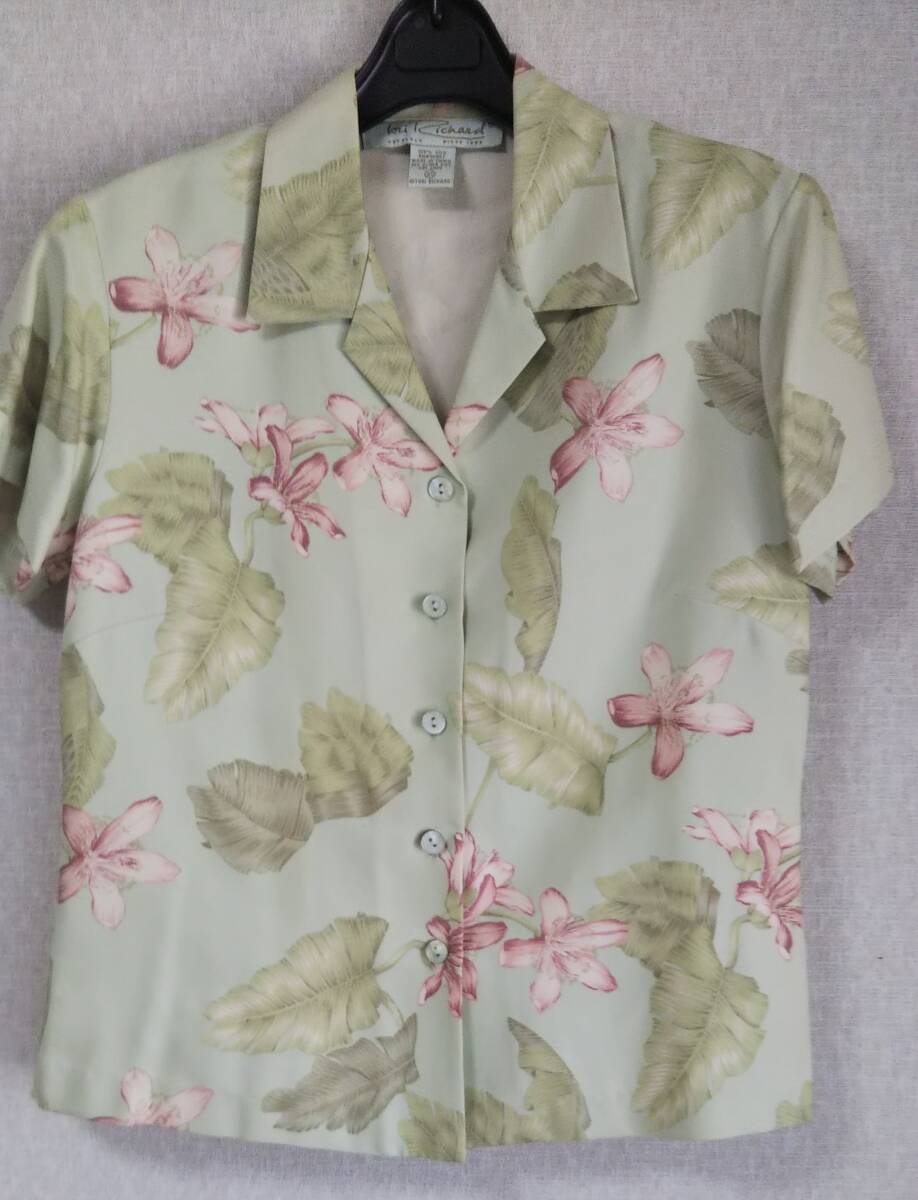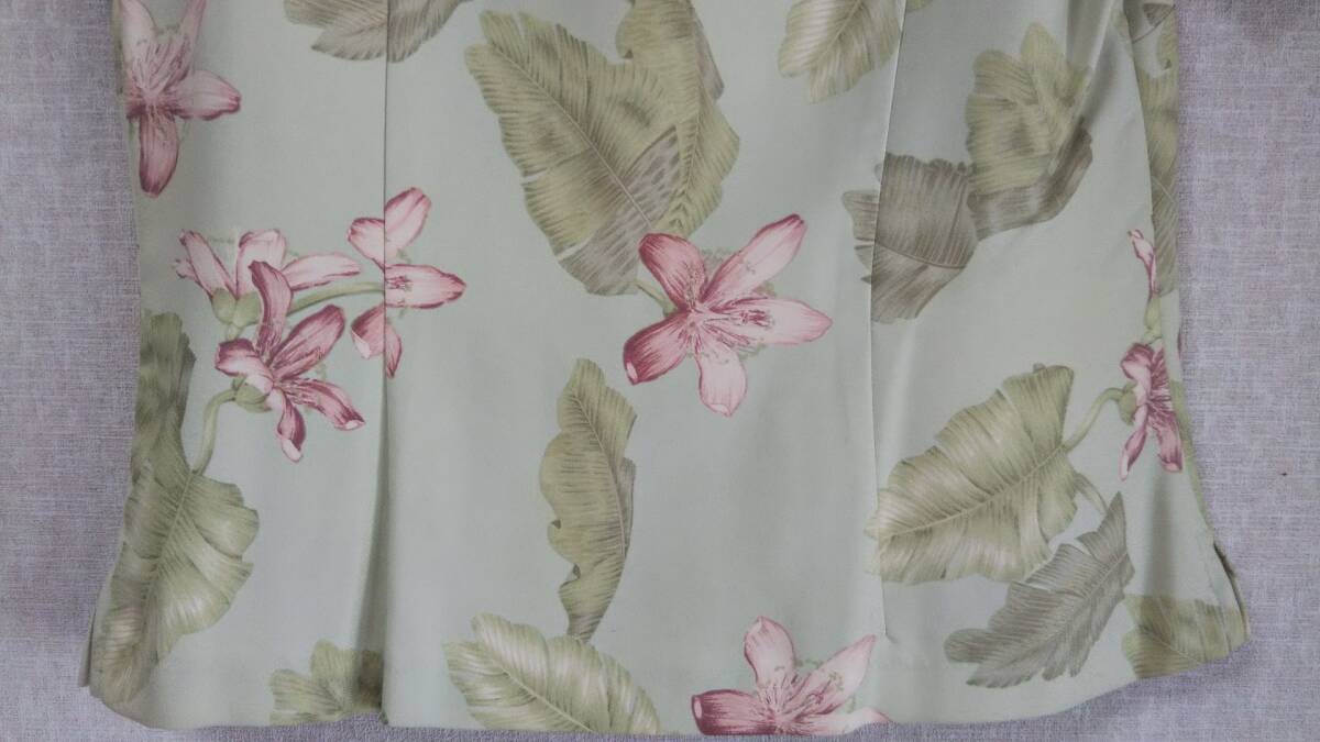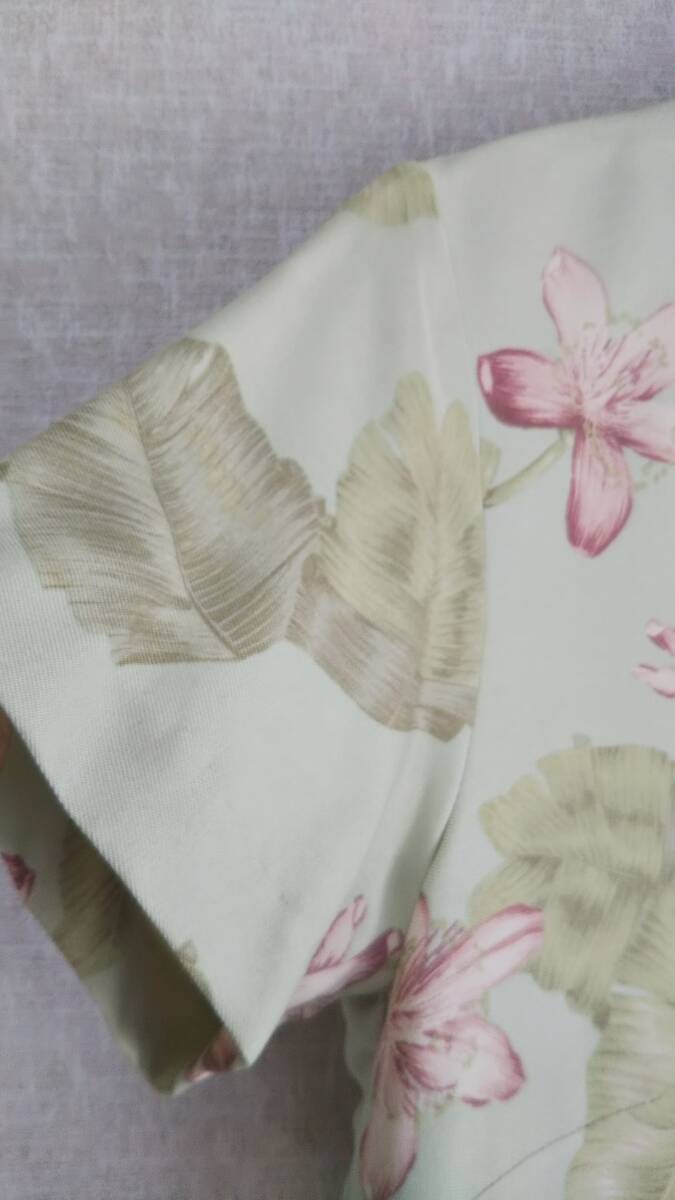 ★TORI RICHARDトリ・リチャード★シルク100%半袖アロハシャツ桜色花柄ミントグリーン/レディースSサイズ7号/上品リゾートウエア絹ハワイ★