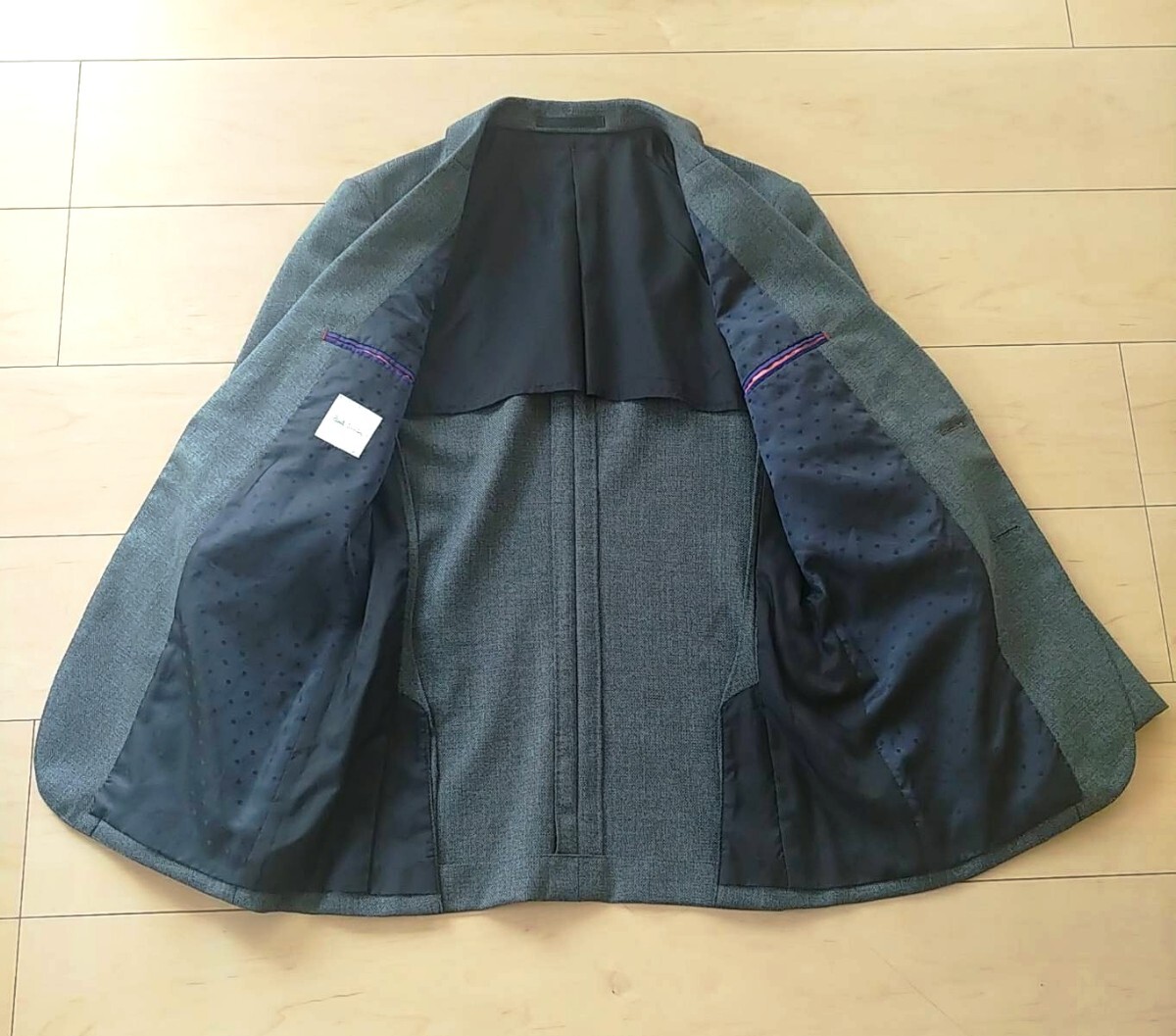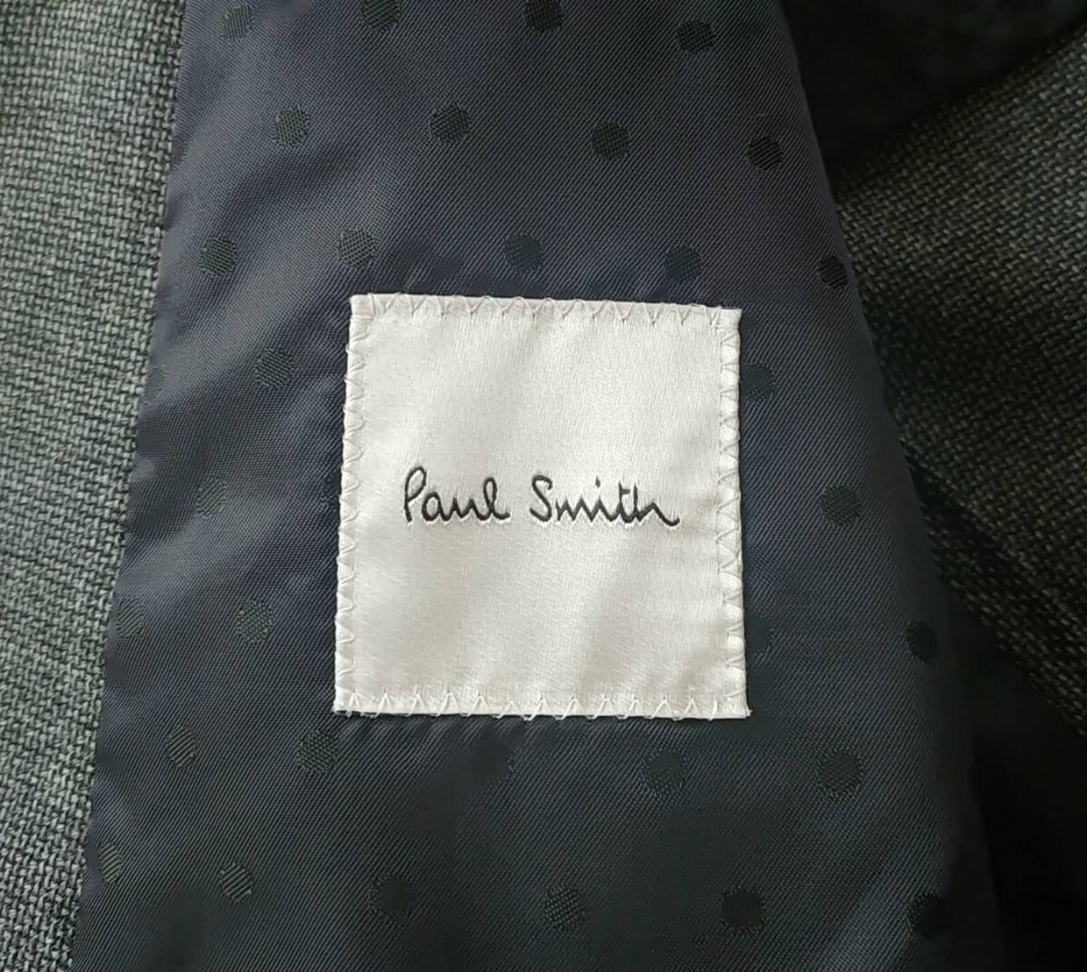 【ポール・スミス】のグレーのジャケットになります。また裏地のドット柄や内ポケットのカラーリングが、ポールスミスらしいとてもお洒落なジャケットです。