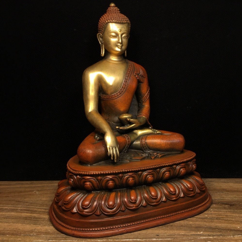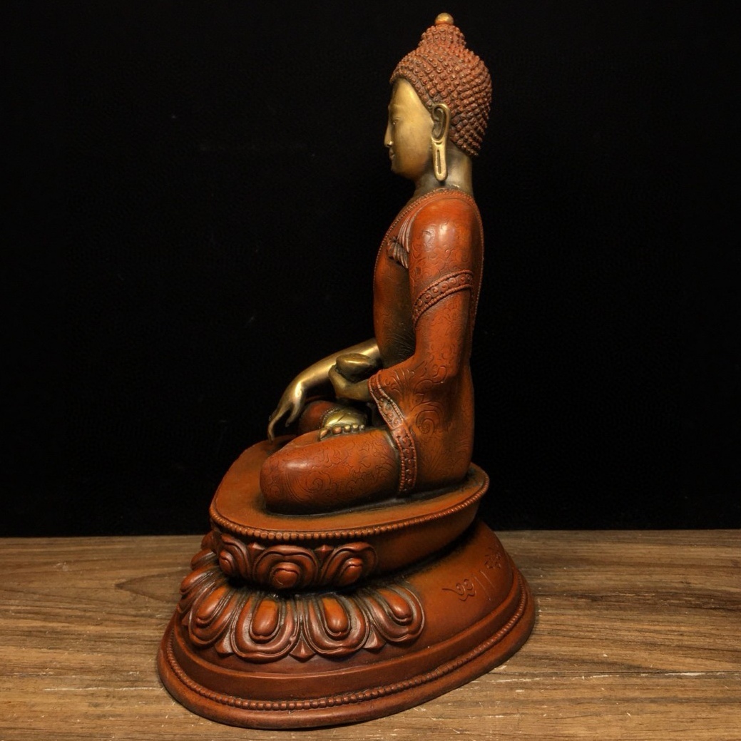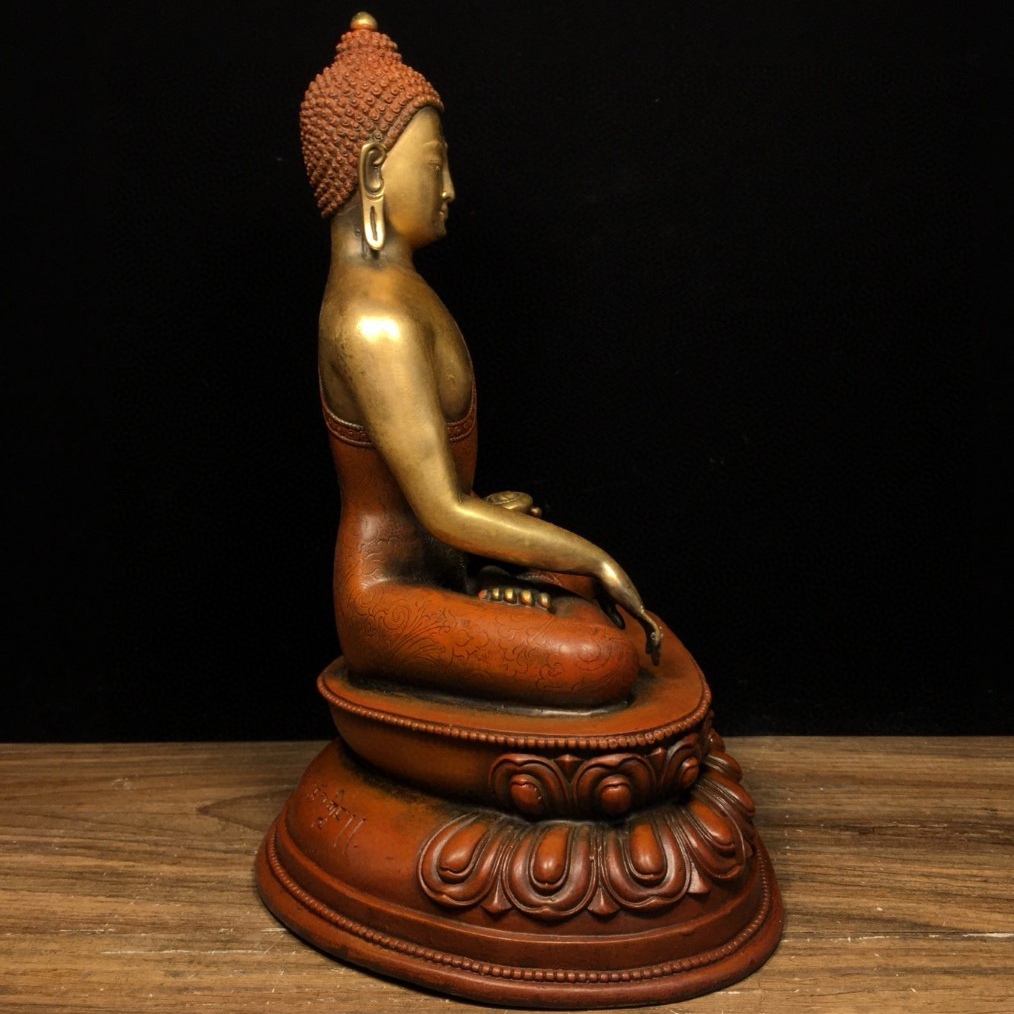 唐物 清 純銅塗真金 釋迦牟尼 置物 仏像 奉納されていた 供養品 銅製 古美術品 時代物 中国古玩 骨董品 D67