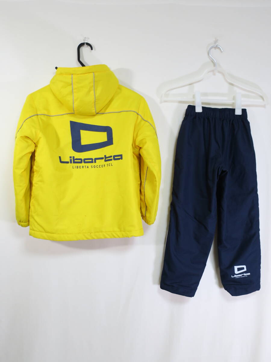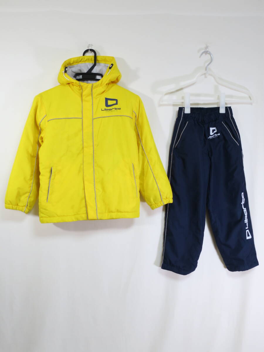 中綿が詰まっており防寒性に優れています。 ジャケット 汚れが全体にございますがしっかり手洗いしていただくと落とすことができるものと思われます。 サイズ 130 着丈55cm 身幅47cm パンツ 良好な状態となっています。 サイズ 120 総丈68cm ウエスト23cm×2 (採寸の誤差はご容赦ください) |