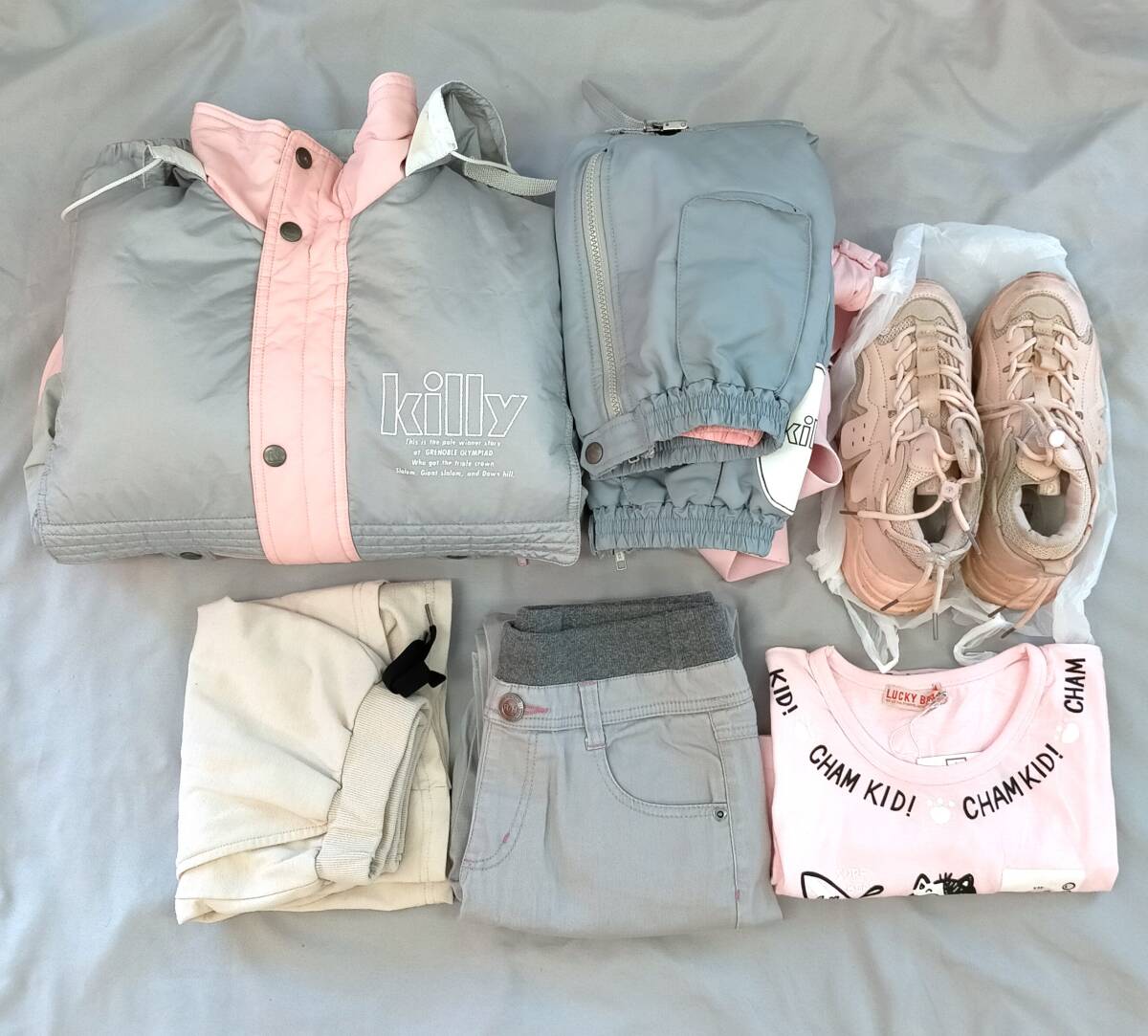 ①killy (asics) キリー (アシックス) スキーウェア上下セット(上) ライトグレー・ピンク 150