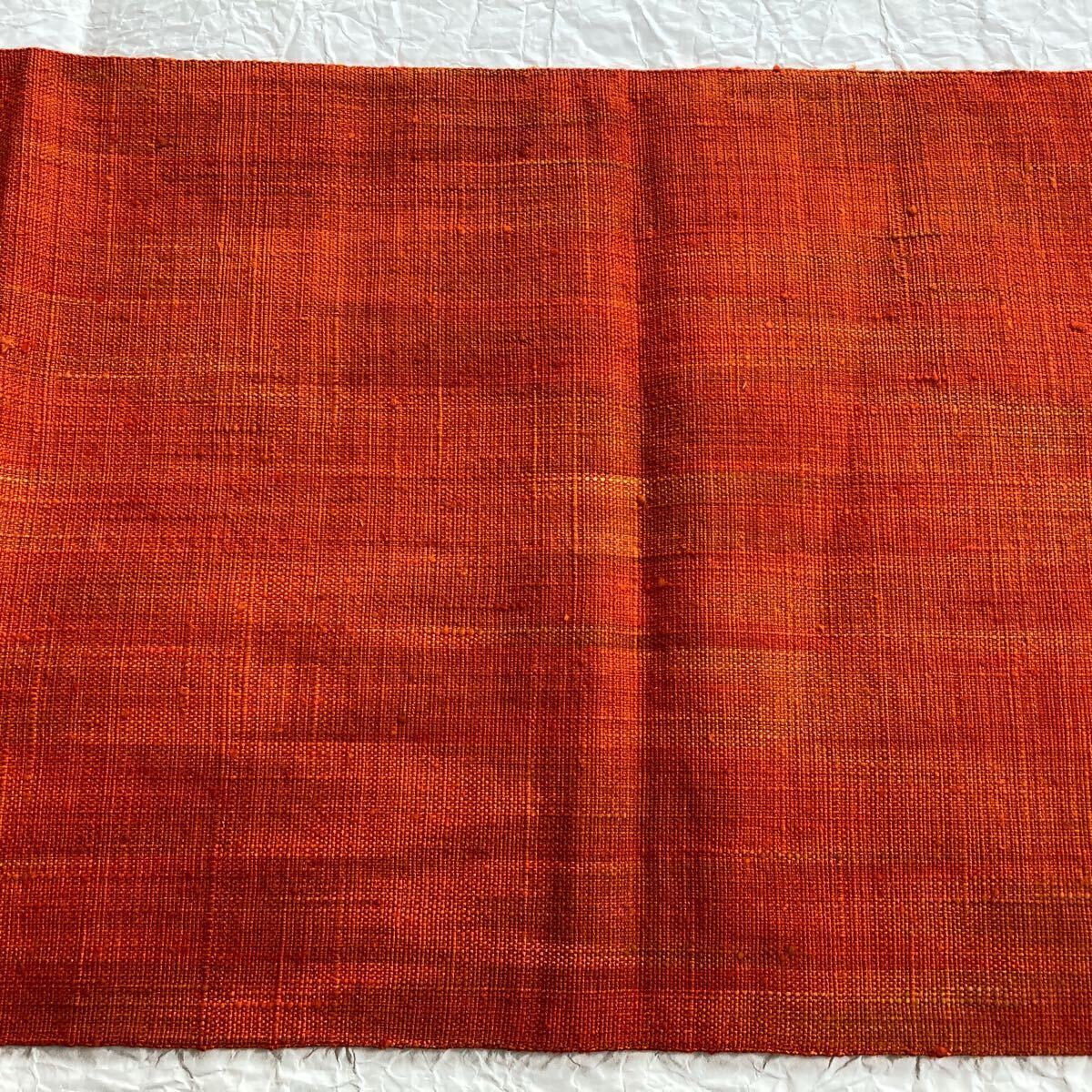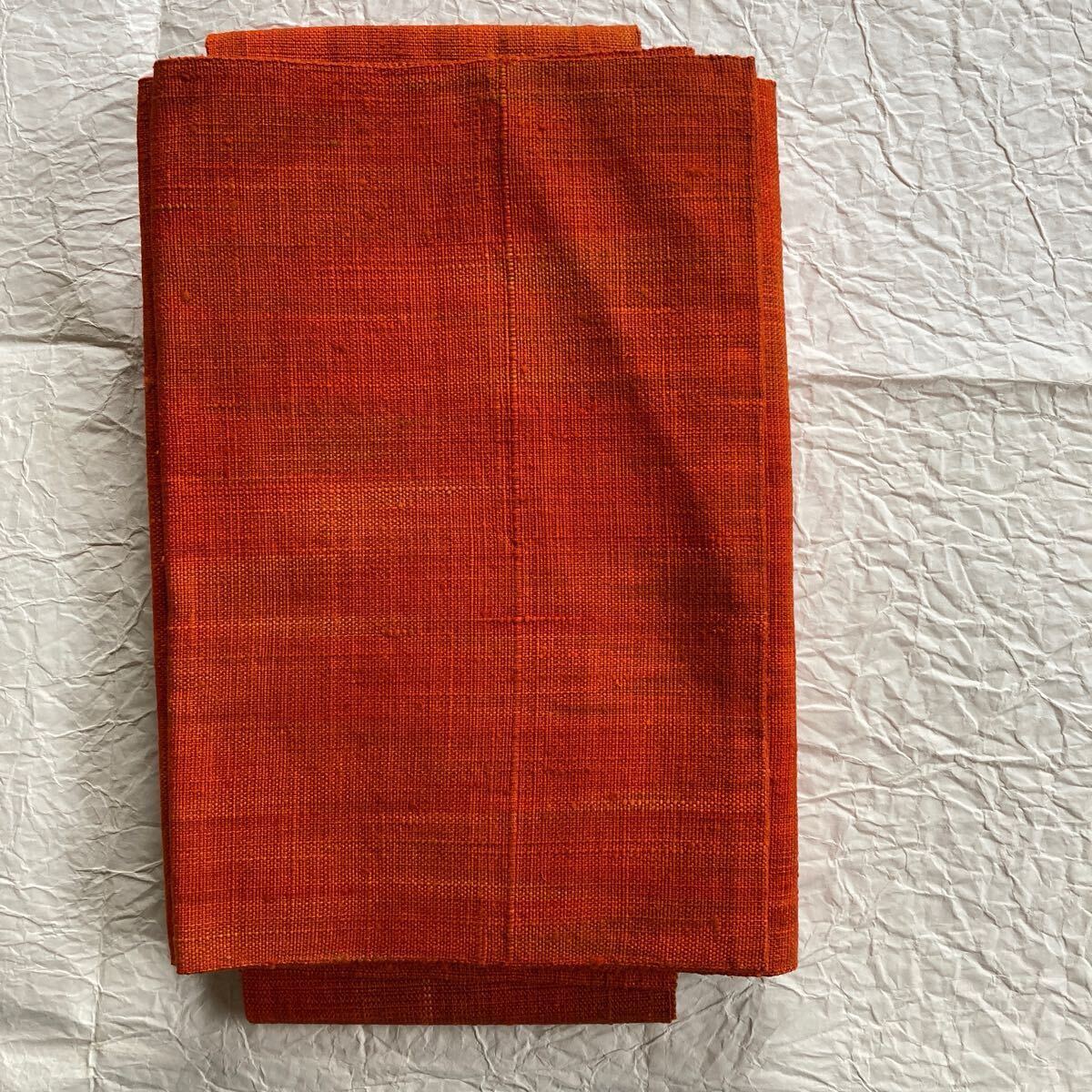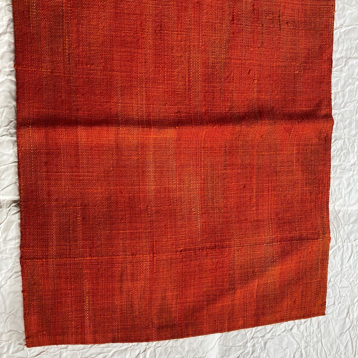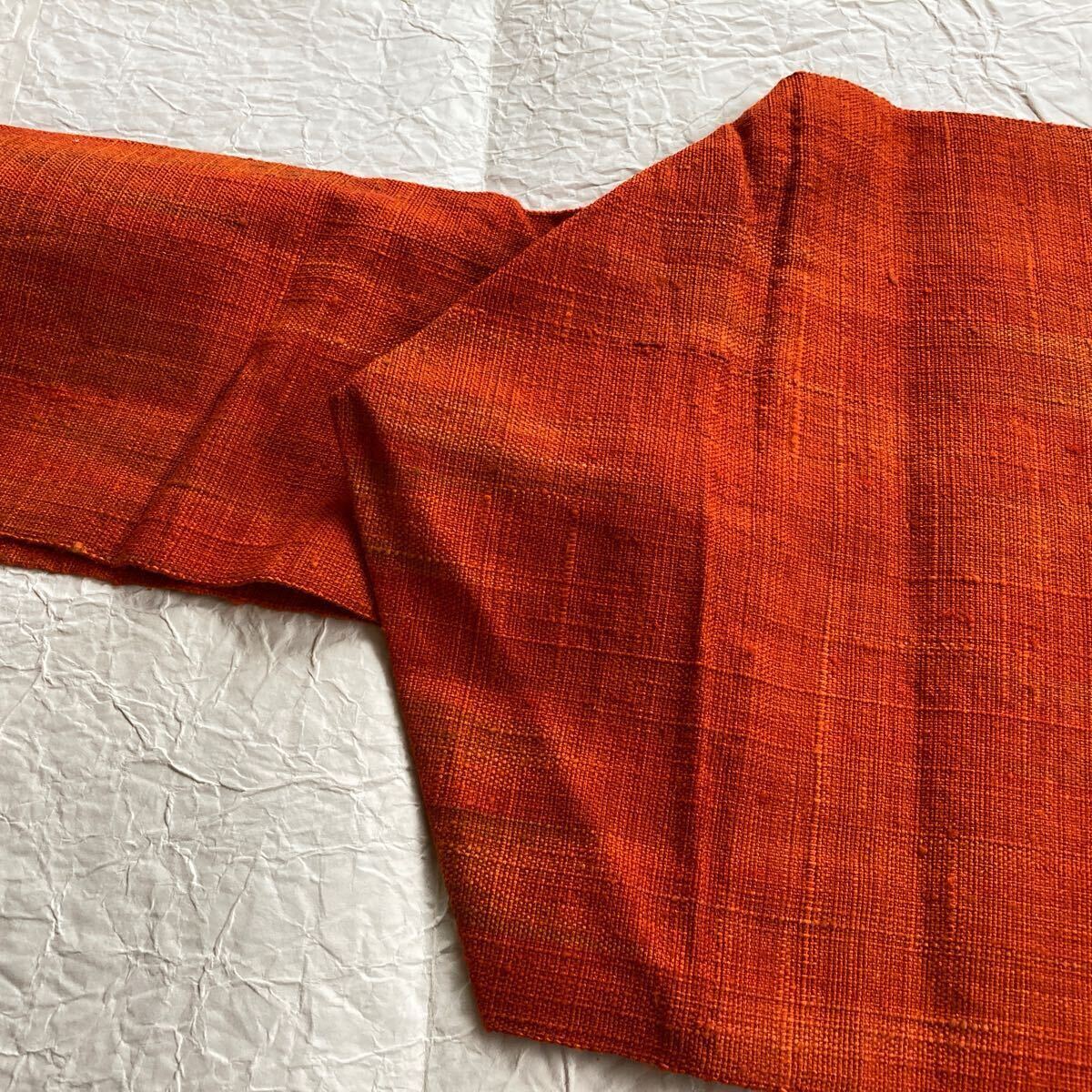 以前に購入したものです。オレンジ色の紬の単帯です。リメイク素材としてもいかがでしょうか?中古のご理解頂ける方に。宜しくお願い致します。