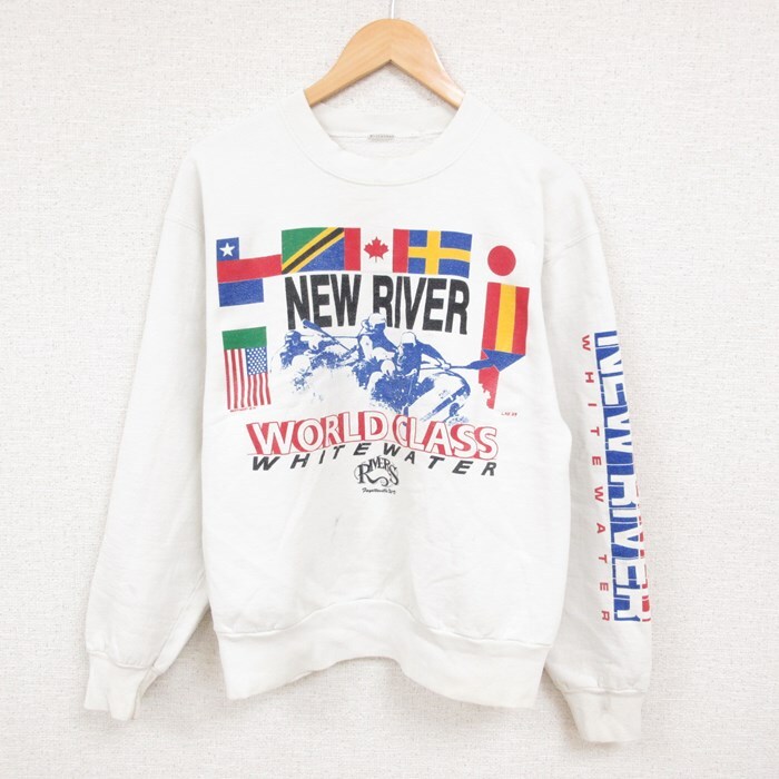 【商品名】 M★古着 長袖 スウェット メンズ 80年代 80s ニューリバー ワールドクラシック ウェストバージニア ラフティング クルーネック 白