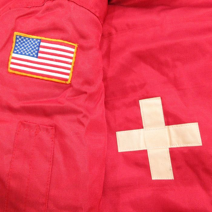 【商品名】 L★古着 ゴールデンフリース 長袖 ジャケット パーカー メンズ 80年代 80s 星条旗 ロング丈 USA製 赤 内側キルティング