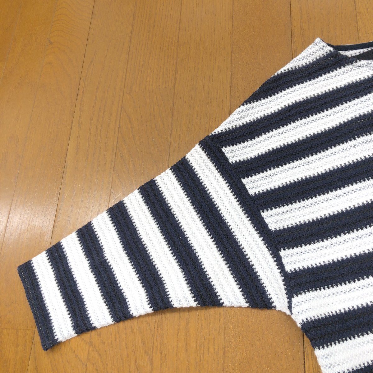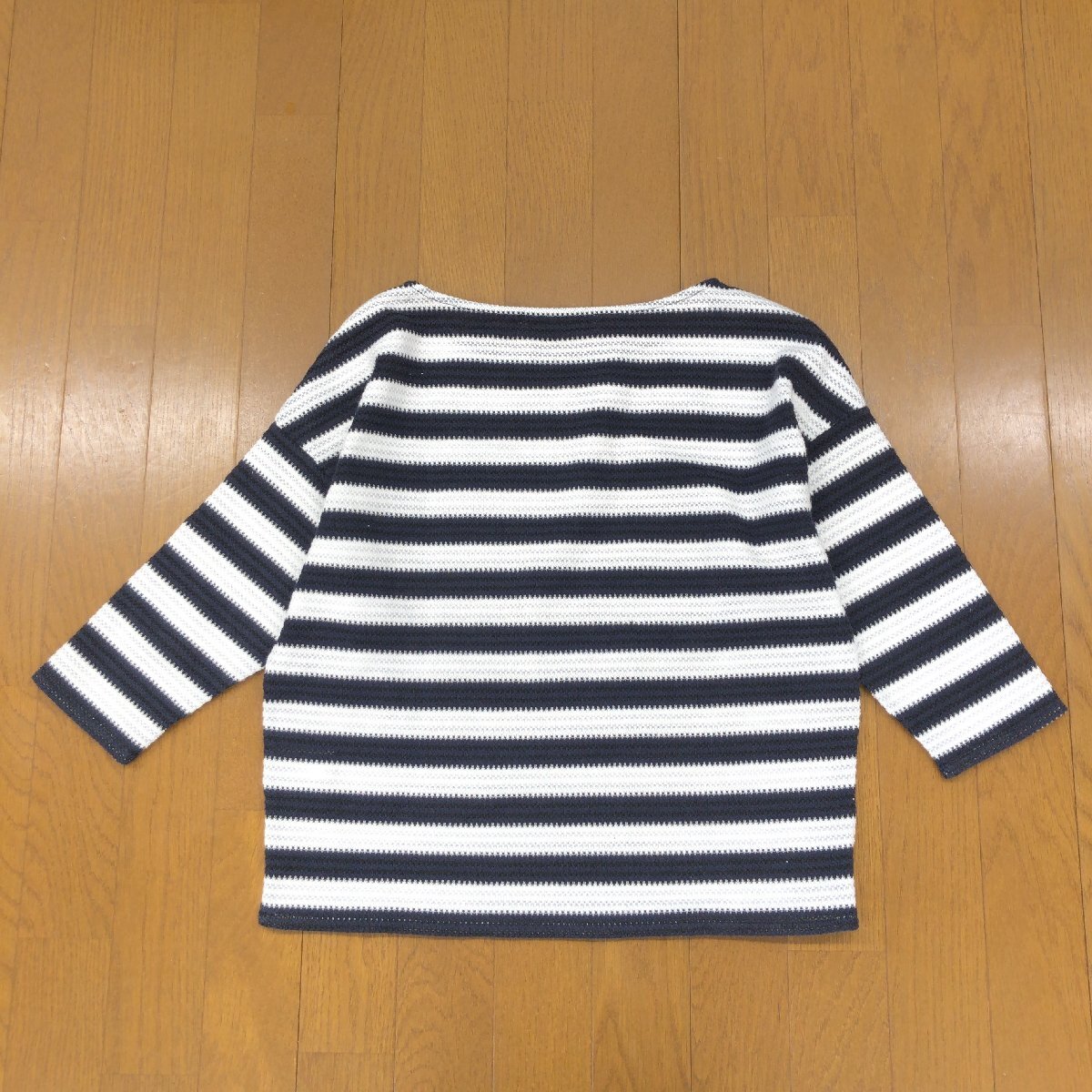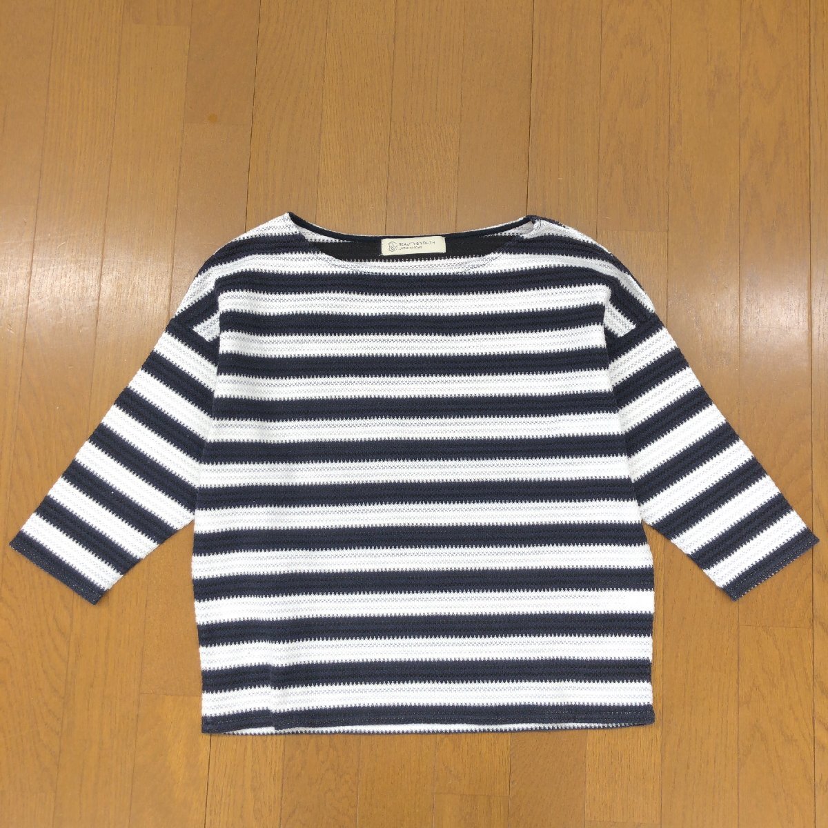 美品 B&Y UNITED ARROWS ユナイテッドアローズ ゆったり コットン サマーニット セーター F 日本製 ボーダー カットソー 七分袖 春夏 婦人