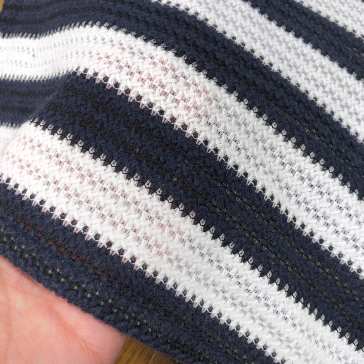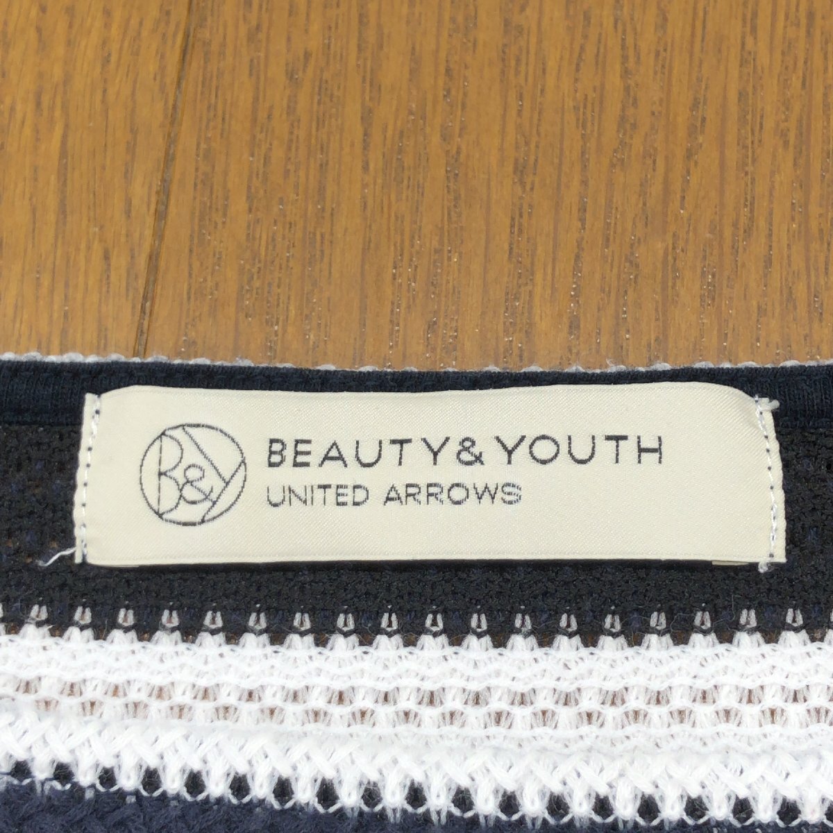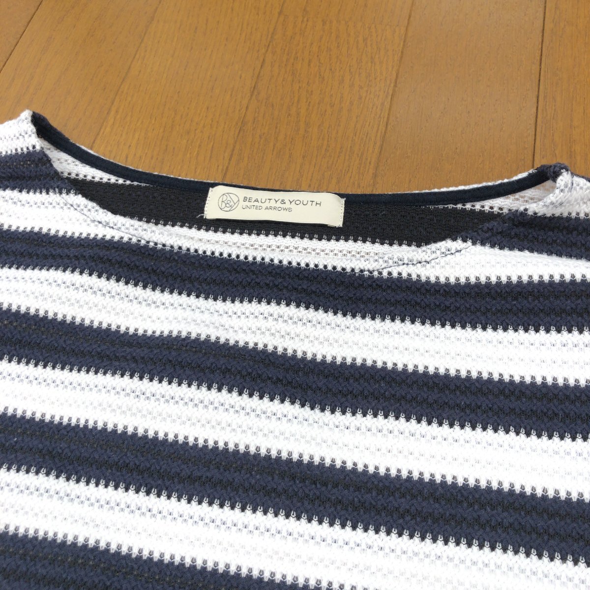美品 B&Y UNITED ARROWS ユナイテッドアローズ ゆったり コットン サマーニット セーター F 日本製 ボーダー カットソー 七分袖 春夏 婦人