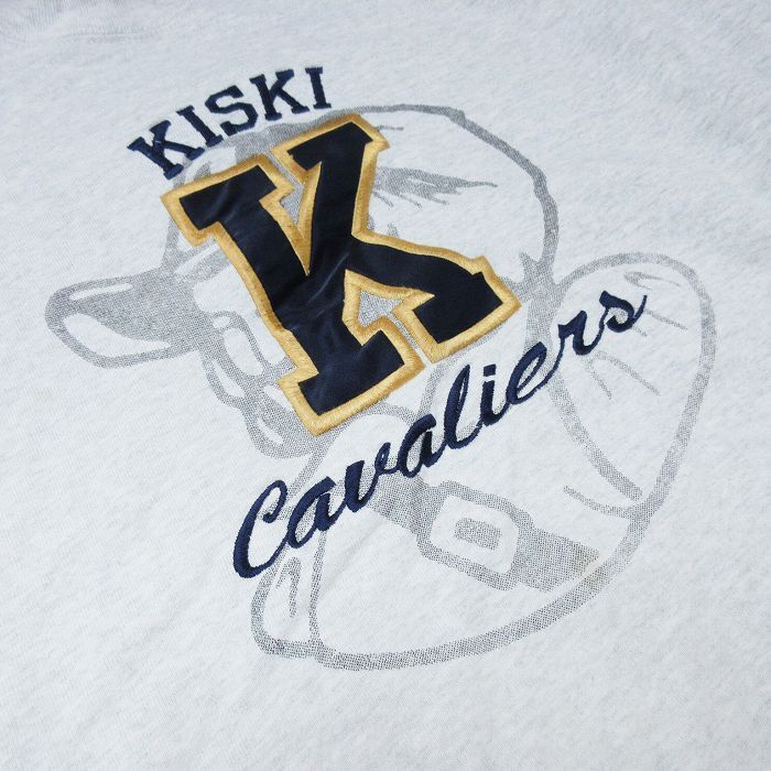 【商品名】 L★古着 長袖 スウェット メンズ 00年代 00s キスキ 刺繍 クルーネック 薄グレー 霜降り