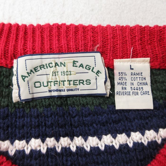 【商品名】 L★古着 アメリカンイーグル 長袖 セーター メンズ 00年代 00s クルーネック 赤他 ボーダー【spe】