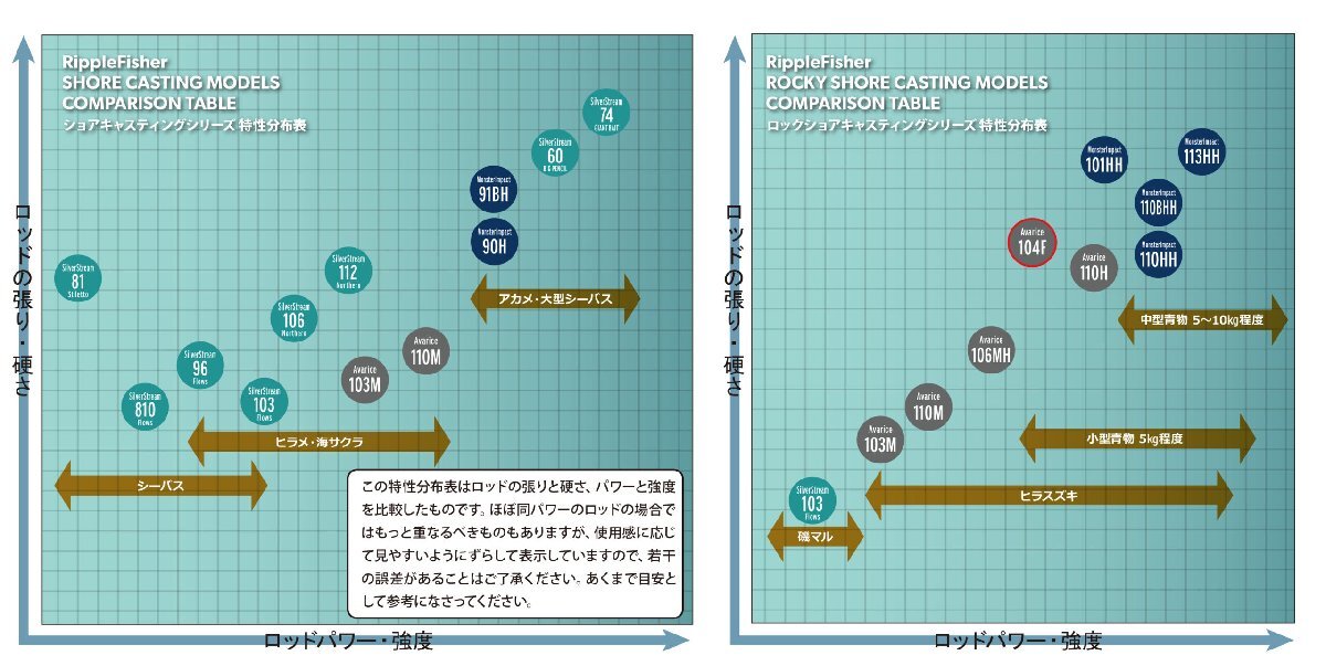 セレクティブな状況のヒラスズキ攻略をコンセプトに、小型のルアーを使いタイトに狙ってランカーを超えるモンスターサイズをも獲ることのできるスペシャルコンセプトモデルです。10ft4inというややショート気味に設定したレングスは、操作性と取り回しの良さ、風を切っての低弾道ピンポイントキャストを可能としました。そしてこだわり抜いたファストテーパーのブランクは、ヒラスズキ特有のショートバイトを拾える繊細なティップを持ち、ファイト時は高い位置で残る支点がレングスの短さを感じさせず、魚のコントロールのしやすさと立ち位置を維持しやすく安全に魚を取り込めます。ヒラスズキゲームに特化したリップルフィッシャーの考えるニューコンセプトロッドです。