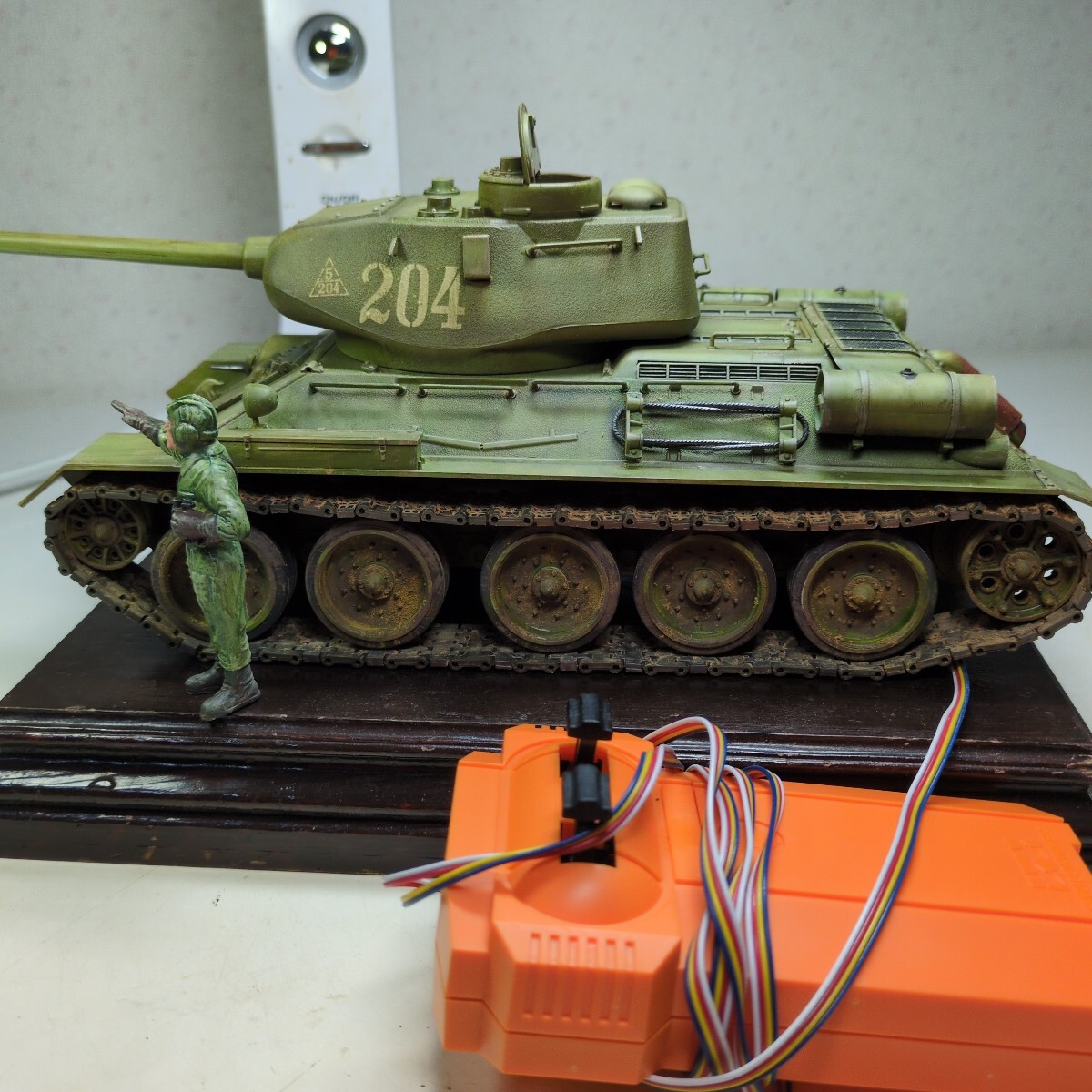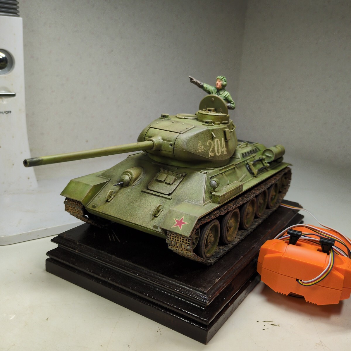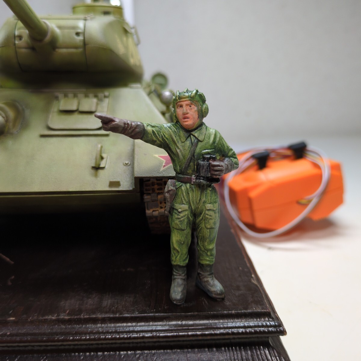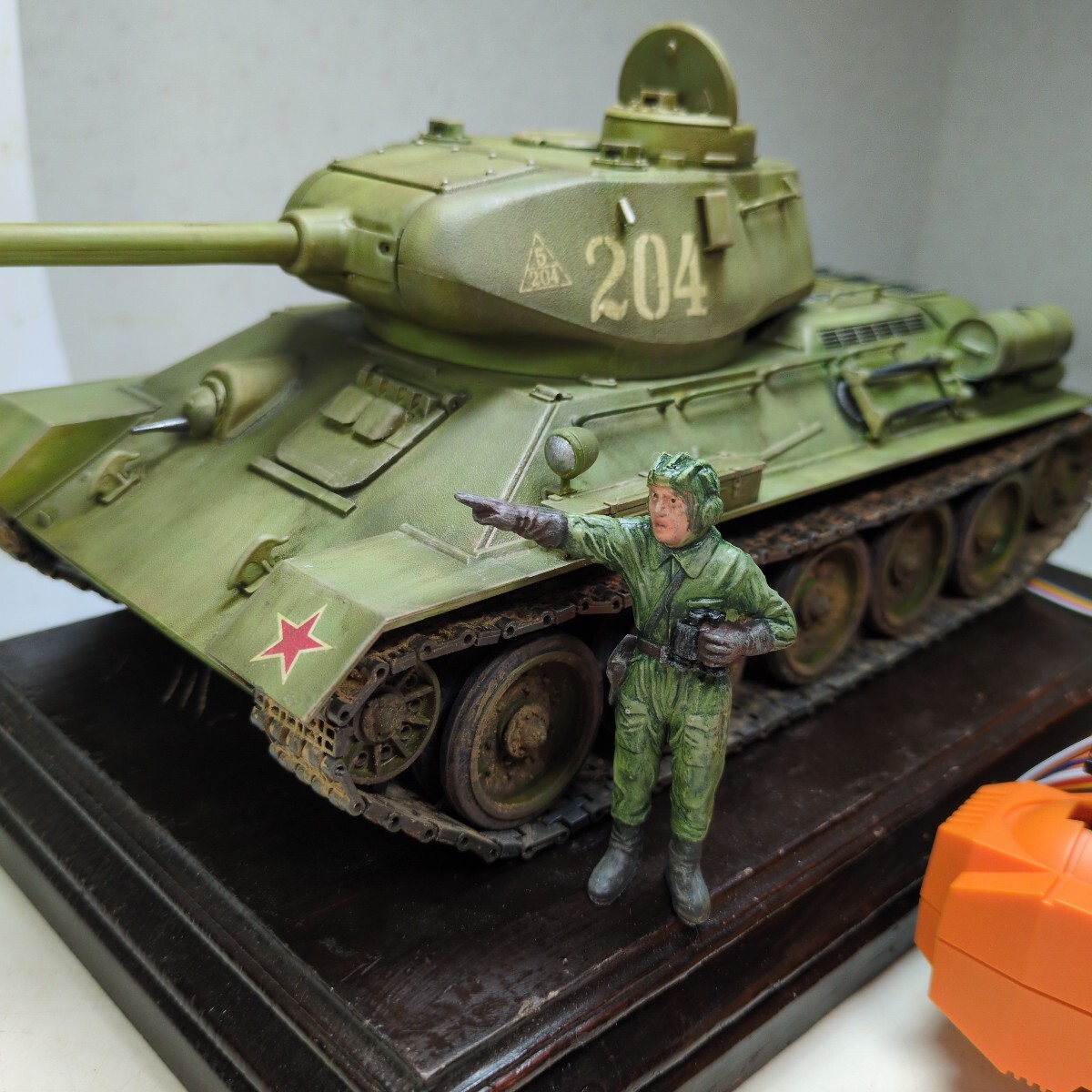 タミヤのT−34ディスプレイモデルをリモコンに改造した完成品模型になりますギャーボックスは金属製の旧タイプを使用していますので耐久性はあると思いますモーターも新品を使用しました