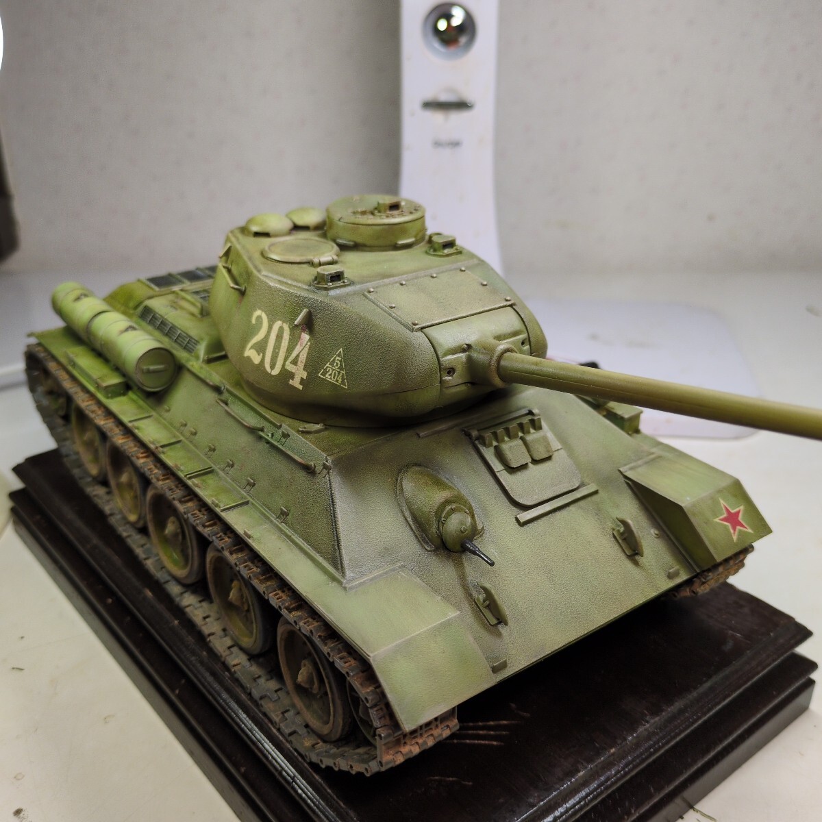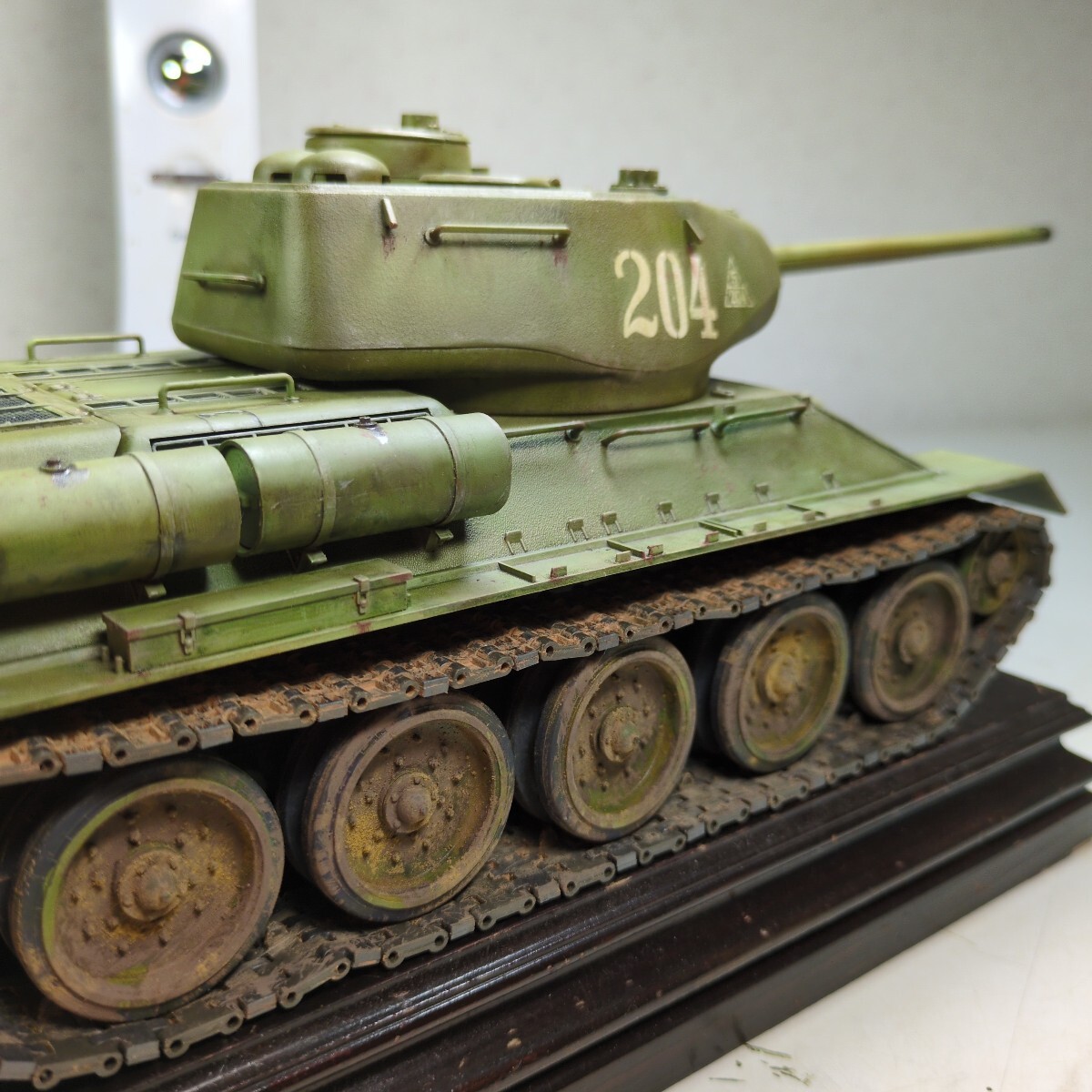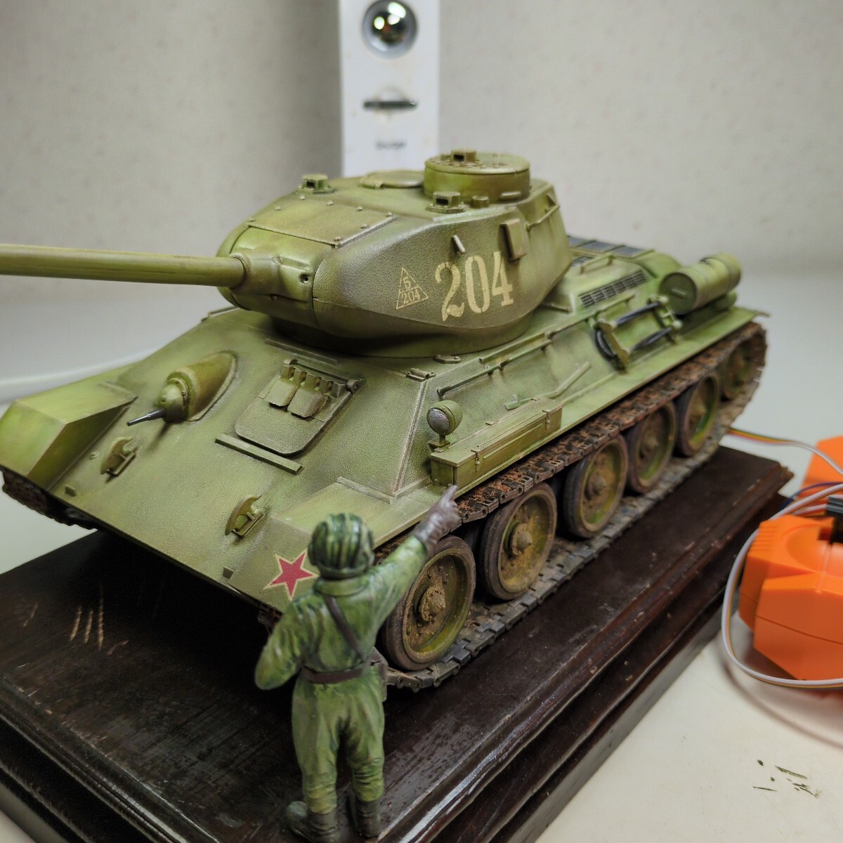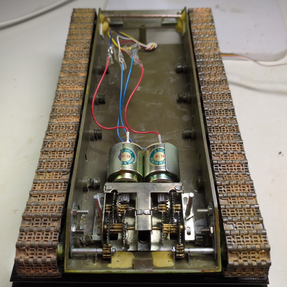 タミヤのT−34ディスプレイモデルをリモコンに改造した完成品模型になりますギャーボックスは金属製の旧タイプを使用していますので耐久性はあると思いますモーターも新品を使用しました