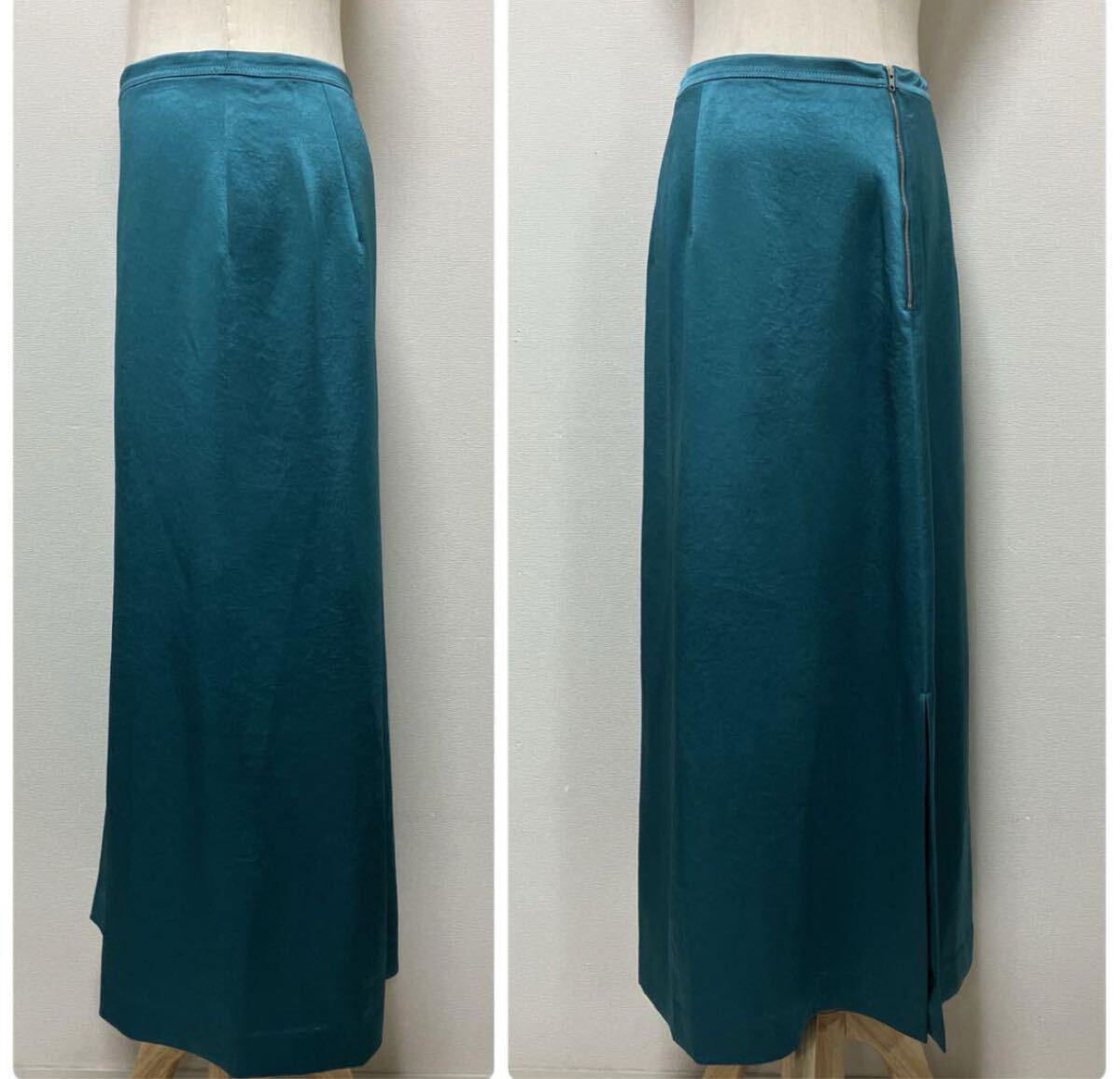 滑らかなタッチと上品な光沢感が魅力のサテン素材を使用したシリーズ。スカートはすっきりとしたウエストラインやヒップ下からさりげなく広がるマーメイドシルエットが女性らしい雰囲気の一着です。アシンメトリーに配したバックファスナーや深めのスリットがミニマルなデザインのシャープなアクセントに。ロング丈ながら軽やかな印象で、ショートブーツともバランス良く合わせていただけます。シンプルなニットやカットソーと合わせた着こなしはもちろん、パーカーなどと合わせてテイストをミックスしたコーディネートもおすすめ。定価21000円