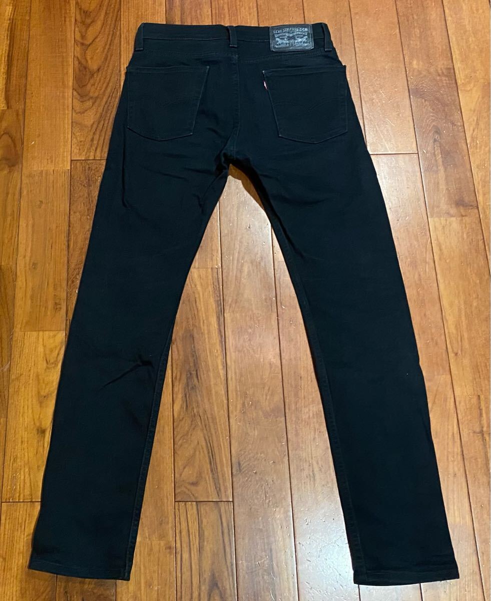 リーバイスのストレッチスキニーデニム(ジーンズ)、510 62209-0016です。色はブラックです。USEDですが状態は良いです(10段階中8程度)。生地はストレッチ入りで綿98%、ポリウレタン2%です。紙パッチ、ジッパーフライです。正規品です(中国製)。サイズはW28でウエストは重ねずに平置きで約74cm、ヒップ約92cm、股上約25cm、股下約77cm、股下15cmのふともも部分約45cm、裾まわり約31cm、重量約540gです。発送はゆうパケットポストになります。
