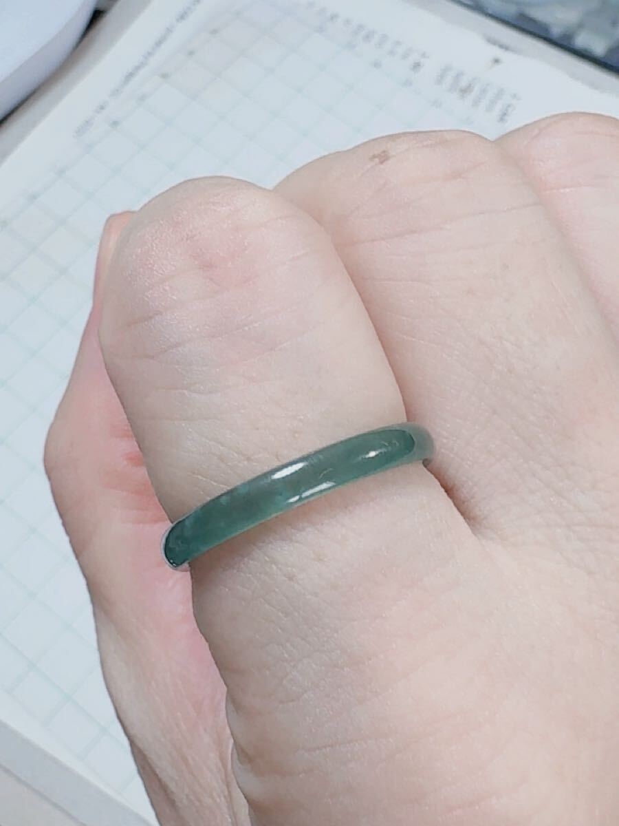 R2-01497 天然本翡翠《本物保証》 藍水翡翠 指輪約17~18号 一点物 希少 縁起物 お守り 魔除け 昇進 成功 風水 金運 財運 幸運 幸福