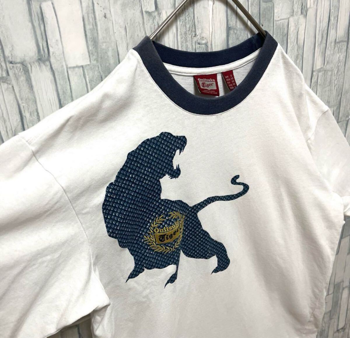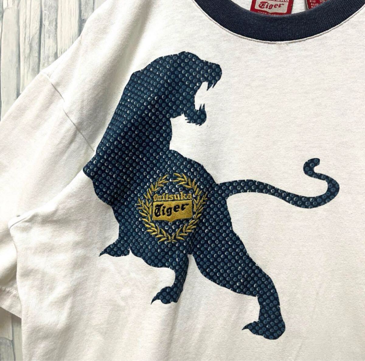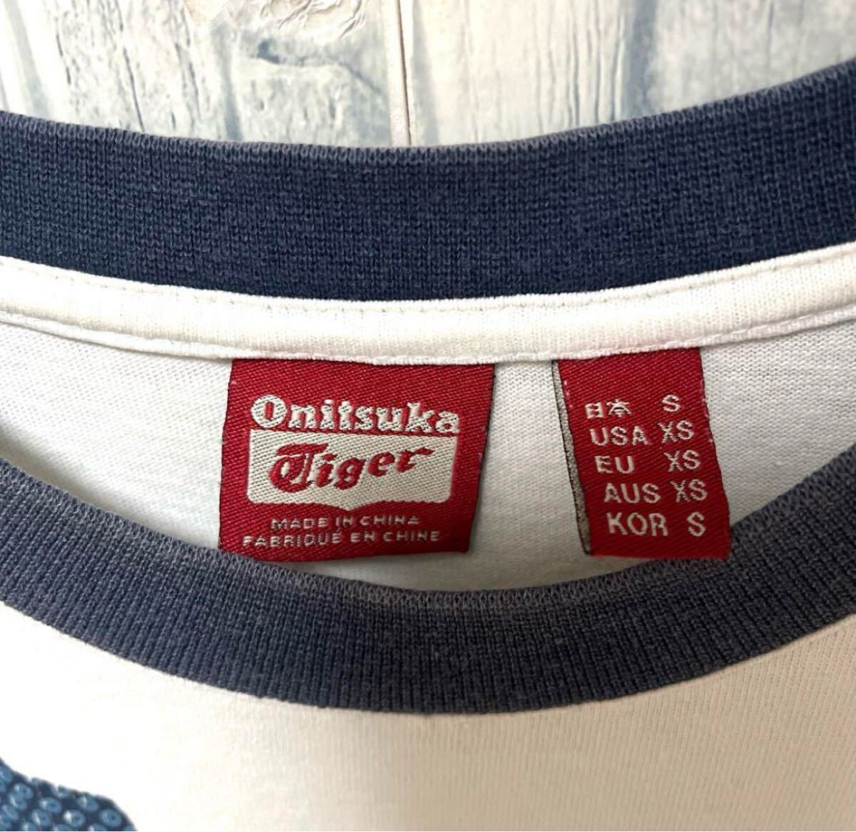 Onitsuka Tiger オニツカタイガー リンガーネックTシャツ サイズS デカロゴ 虎 半袖 送料無料の出品です。