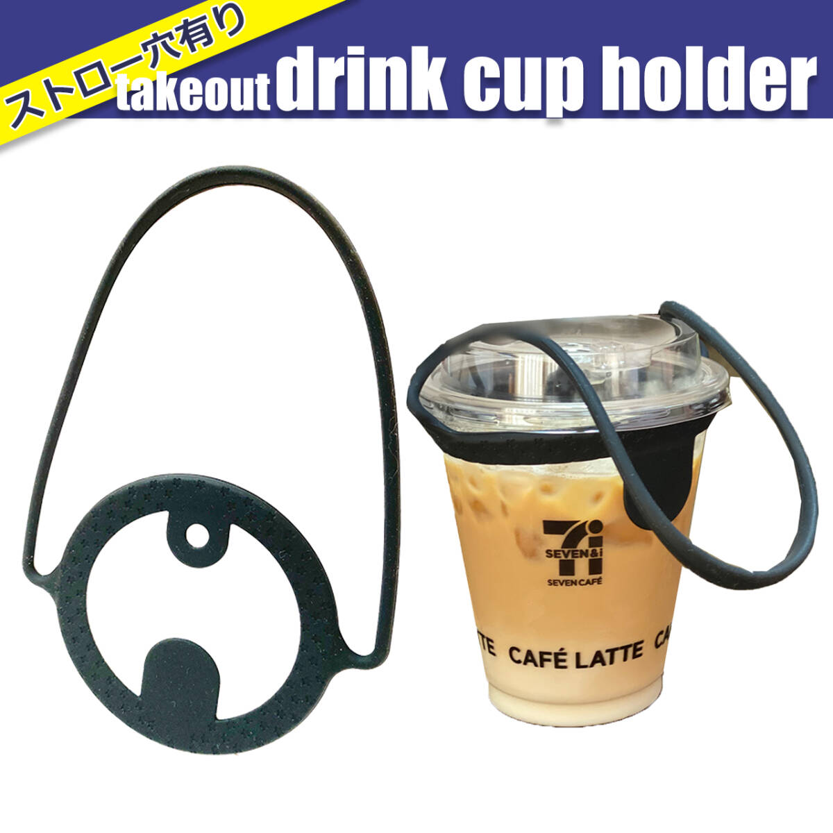 ◆新品/送料無料◆ ドリンクカップホルダー シリコン 持ち歩き ストローホルダー付き テイクアウト スタバ コンビニコーヒー 黒ブラック2個