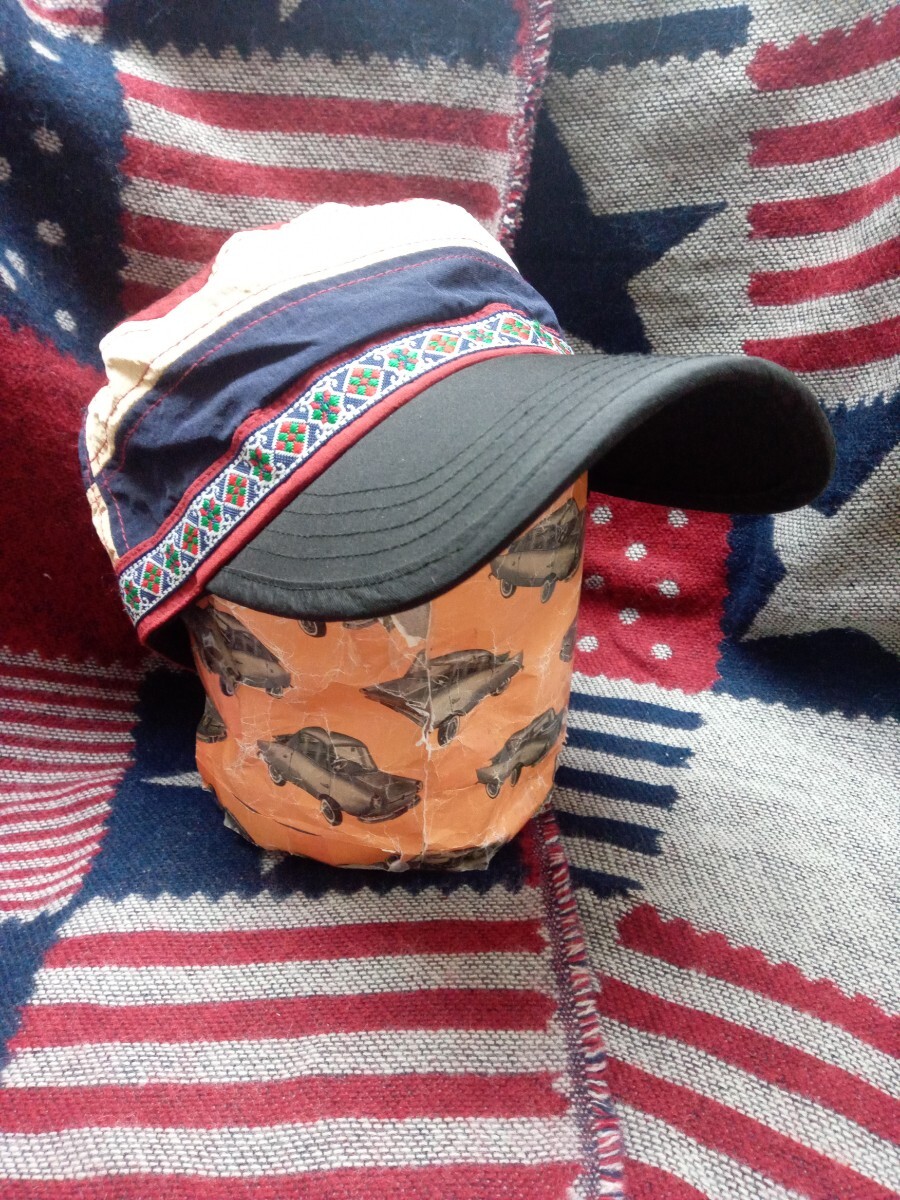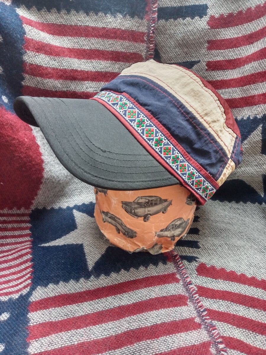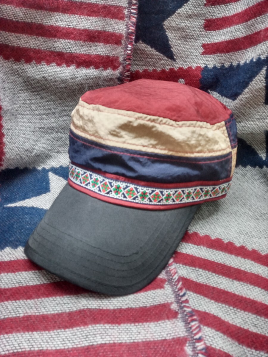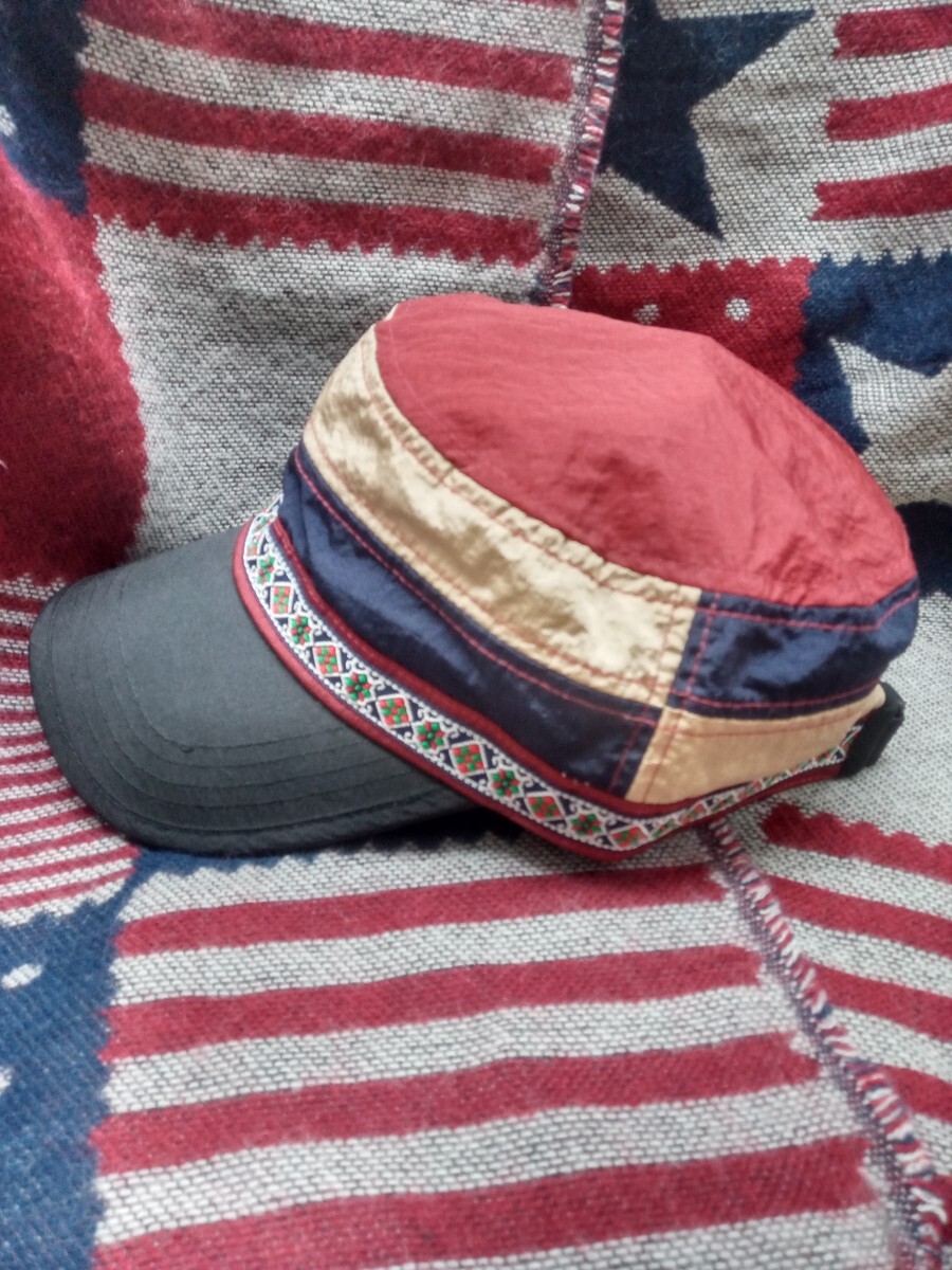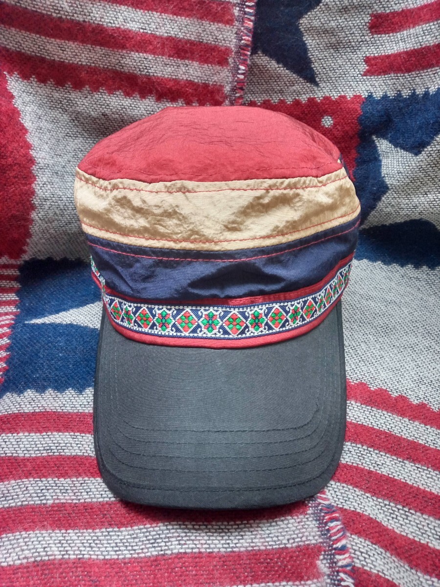 後ろのベルトでサイズの調整ができる、一般的なフリーサイズ(58cm前後)の物です。