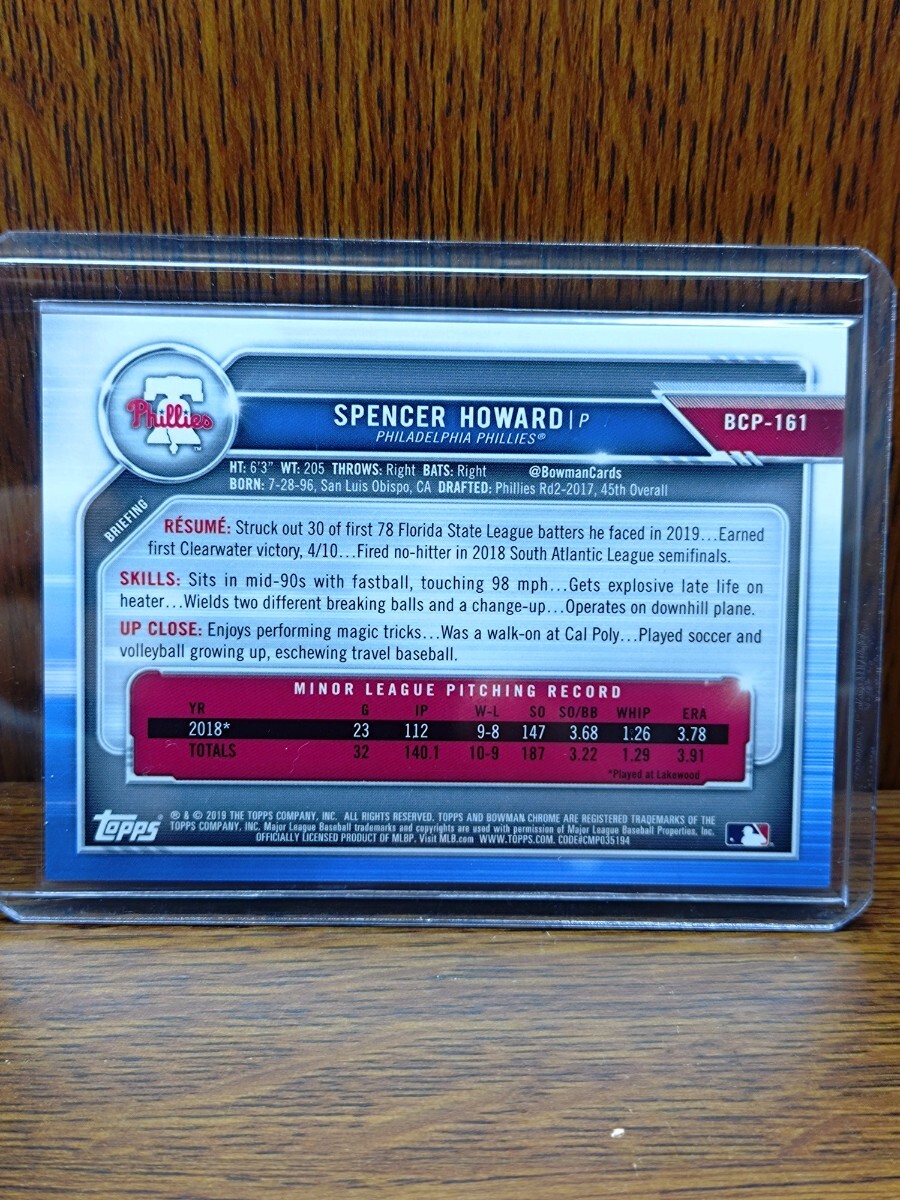 スペンサーハワード spencer howard 2019 topps baseball bowman chrome mlb 50シリ 現楽天ゴールデンイーグルス