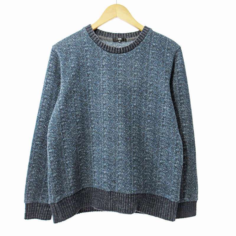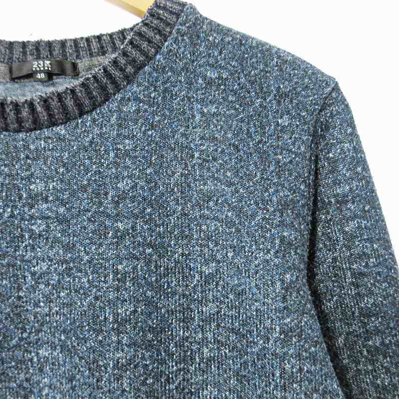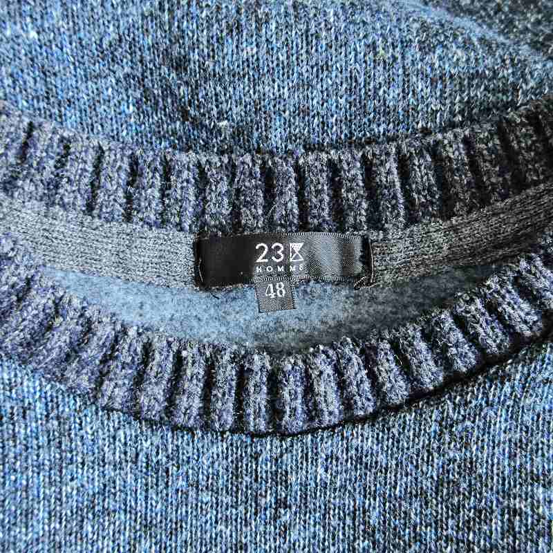 23区 オンワード樫山 HOMME オム ミックスカラーニット セーター 長袖 裏起毛 48 紺 ネイビー 0716 IBO73 メンズ
