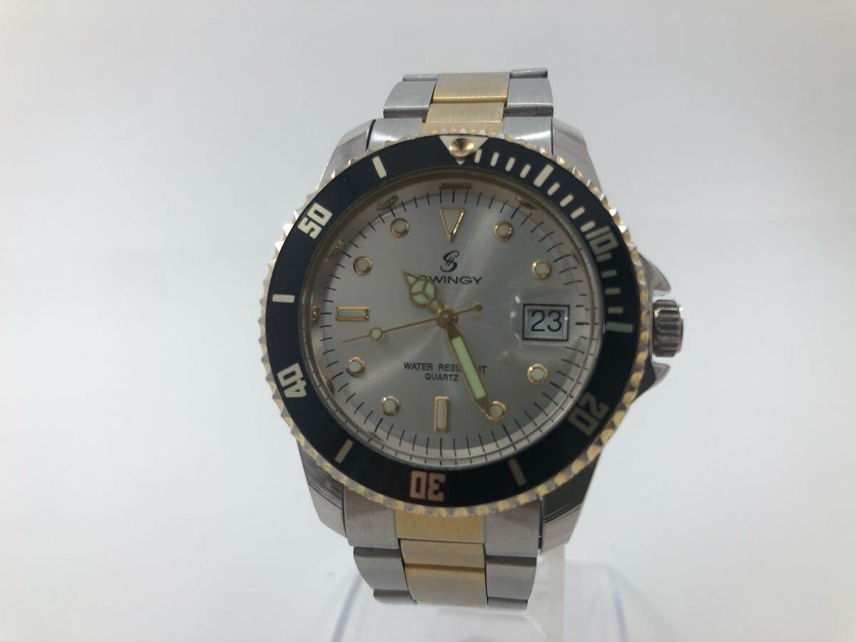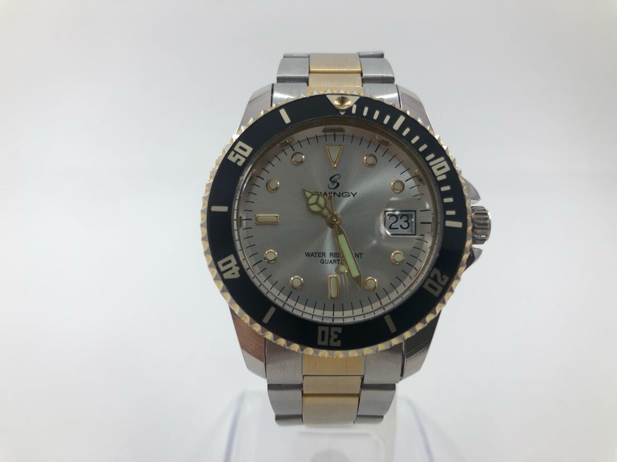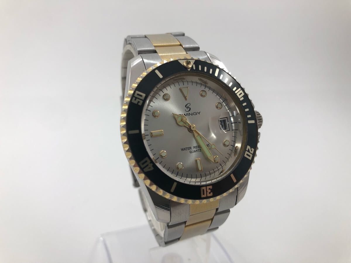 【稼働品!!】スインギー・サブマリーナ風ウォッチ・デイト・コンビカラー・コマ付[SWINGY QUARTZ]クォーツ式メンズ腕時計【中古品】