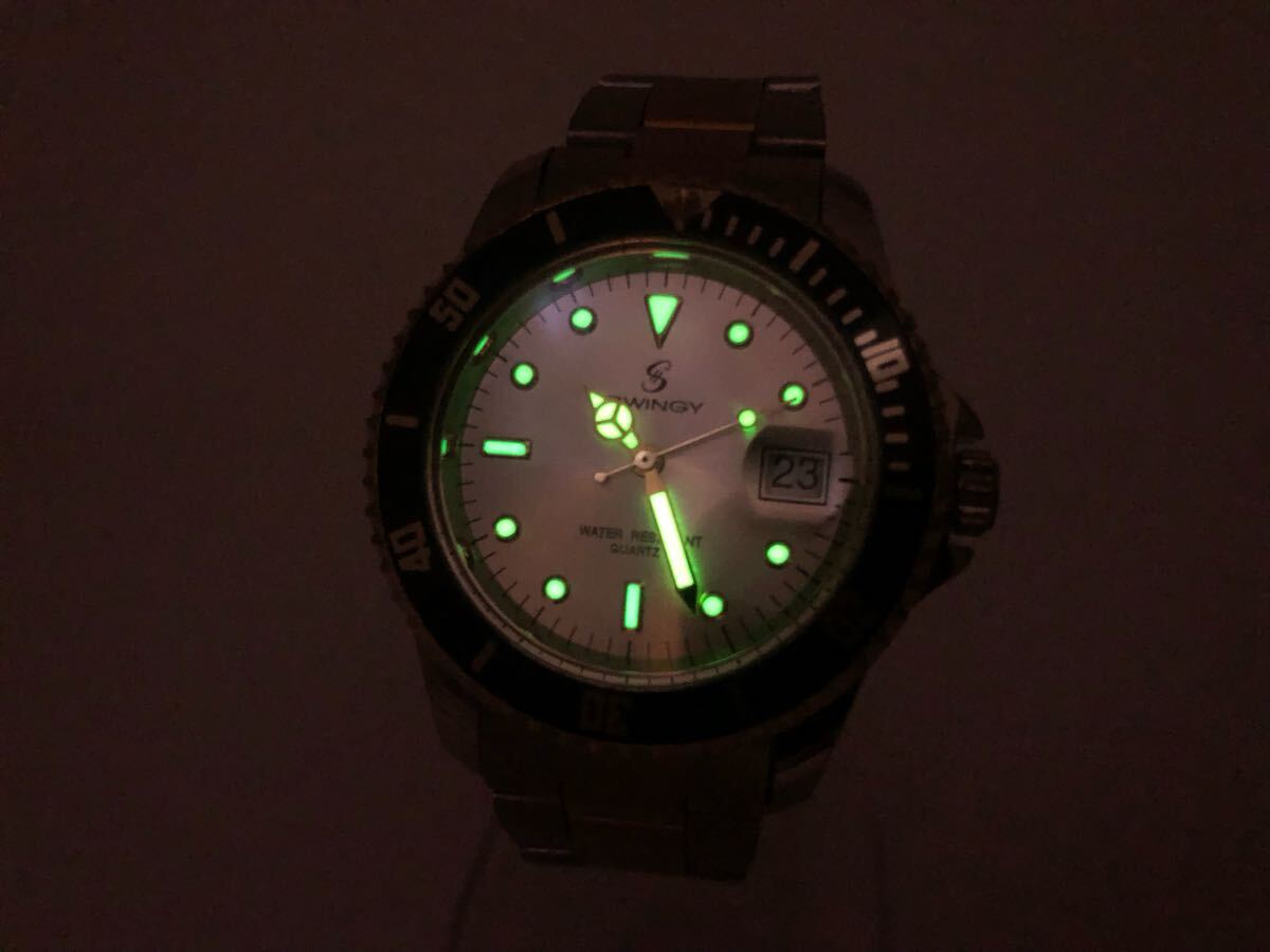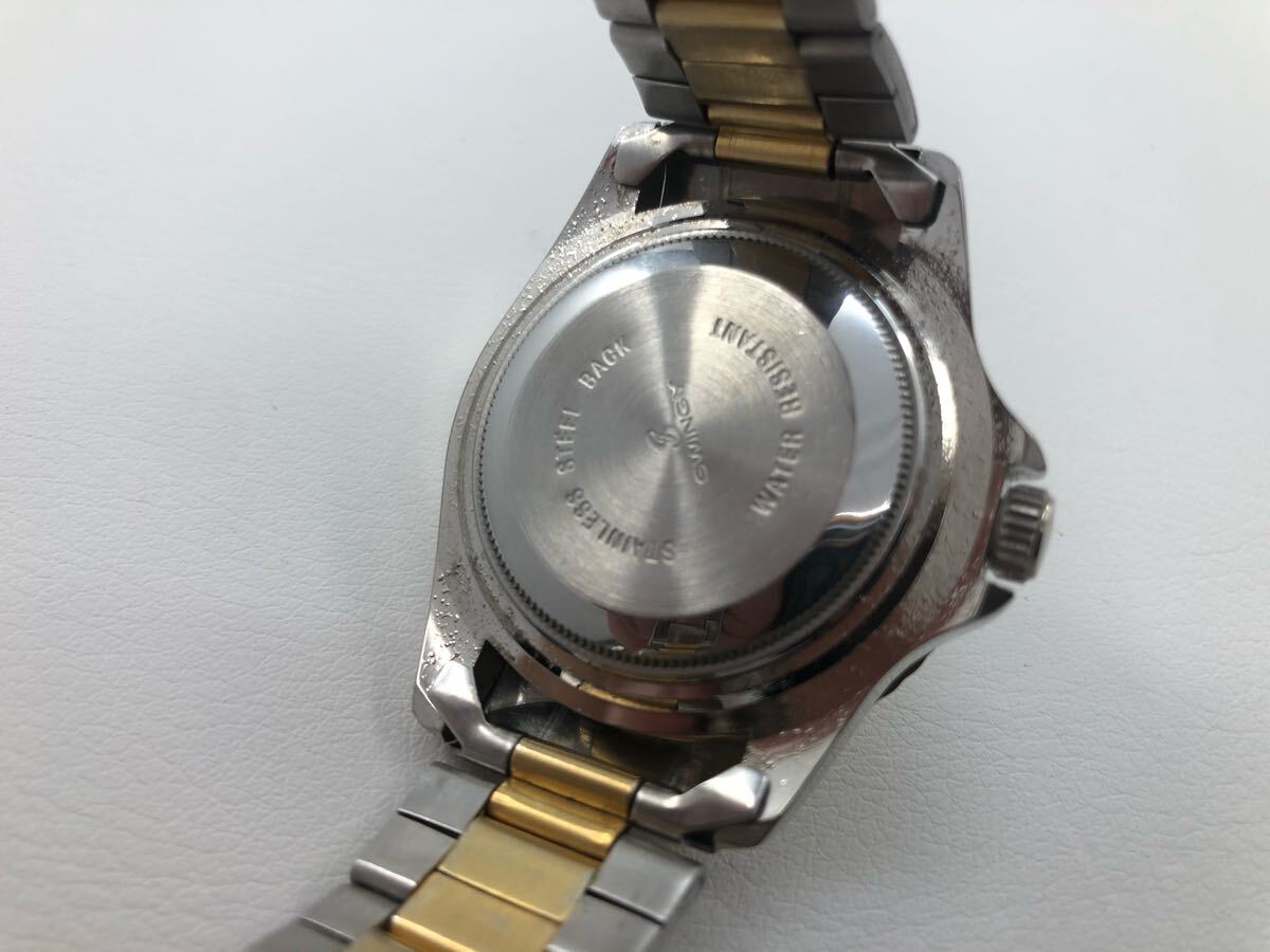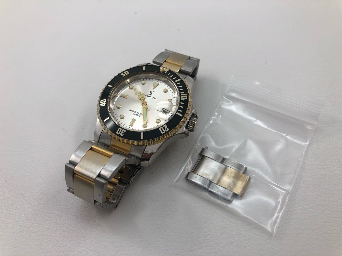 【稼働品!!】スインギー・サブマリーナ風ウォッチ・デイト・コンビカラー・コマ付[SWINGY QUARTZ]クォーツ式メンズ腕時計【中古品】