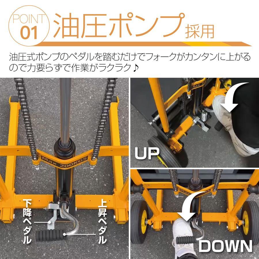 ハンドフォークリフト 200kg 昇降60mm-900mm フォーク長さ470mm 幅150-510mm