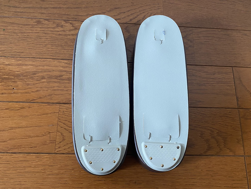 フリーサイズで台の長さが約23.5センチ、台の幅が約8センチ、つま先の高さが約2.5センチ、かかとの高さが約5センチです。