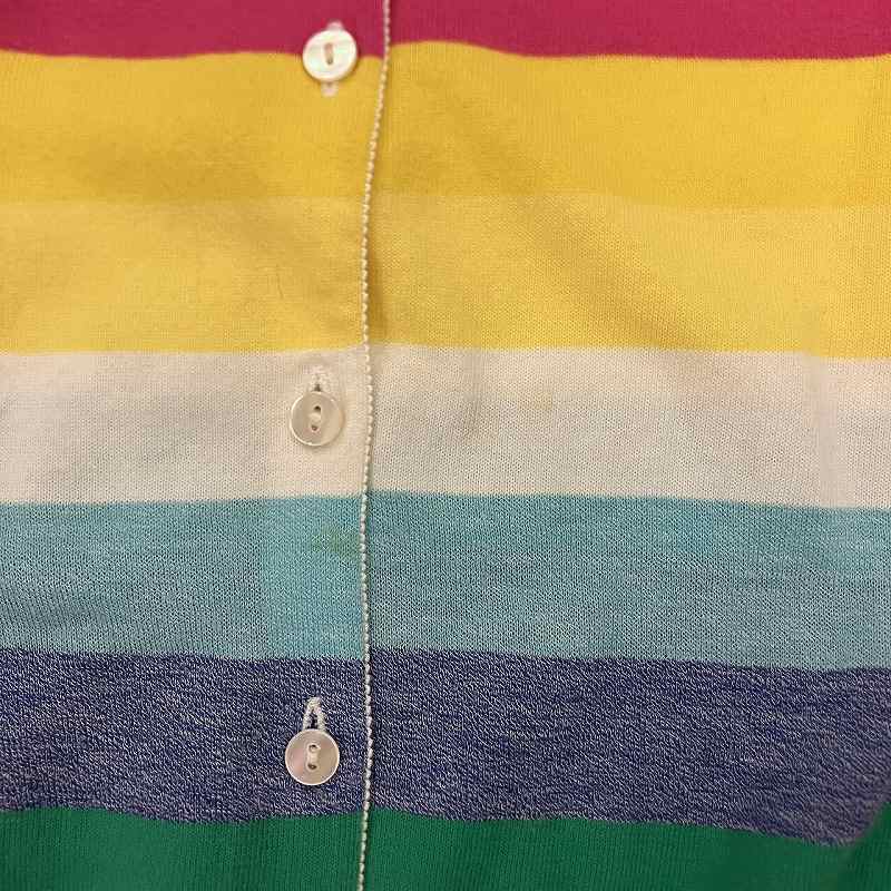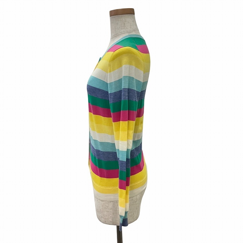 マカフィー MACPHEE トゥモローランド マルチボーダー カーディガン ニット 長袖 S 黄色 緑 ピンク 0715 レディース