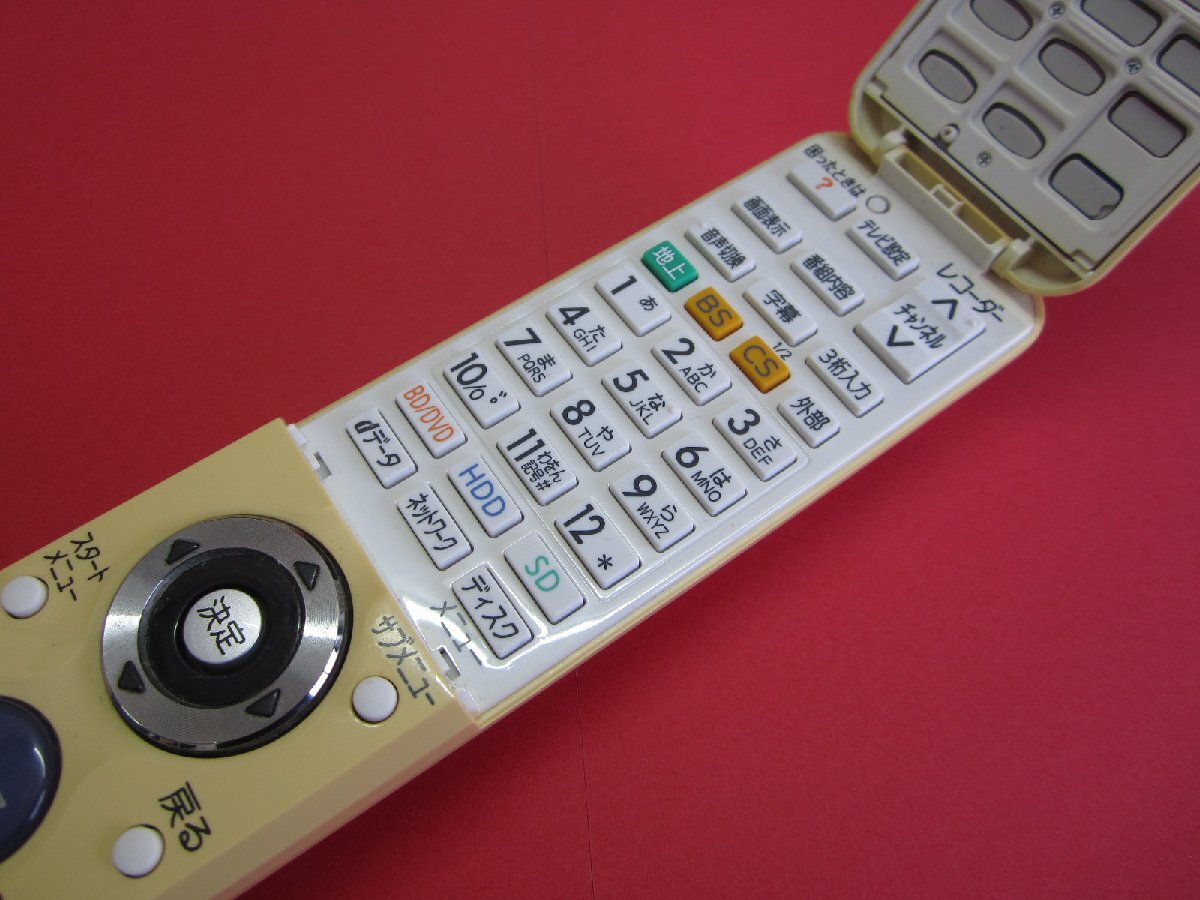 | ☆中古リモコンを全ボタンチェックしてお届け! ☆アルカリイオン水で清掃、除菌、抗菌、消臭処理済! ■商品の状態 (キズ 汚れ 動作等)■ ・焼けが有ります。中古品である事をご理解下さい。 ★洗浄用のアルカリイオン水でクリーニングしていますが中古品ですので使用による 落としきれない汚れや傷,また経年に依る焼け,さび等有る場合もありますが、後は画像にてご判断下さい。 ※電池は付属しておりません。 ■動作確認 ・出品時と出荷時の2回、1台ずつ全ボタン赤外線発信動作および 液晶表示の確認しています。 (実機での動作確認はしておりません) ■動作保証 ・万が一動作に不具合があった場合、返金保証致します (到着7日以内にご連絡下さい) ■クリーニング済 ・1台ずつ、除菌、抗菌, 消臭、防錆のできるアルカリイオン水の洗浄剤で、 クリーニングし出品、お届け後、即ご使用できますよ。 ※対応機種の質問はお答えできませんメーカーHP等でご確認下さい |
