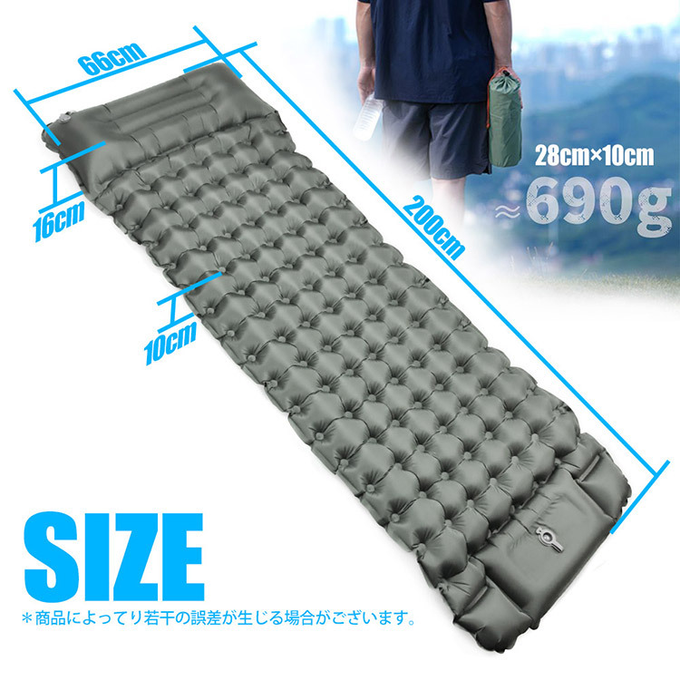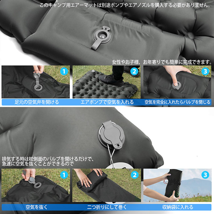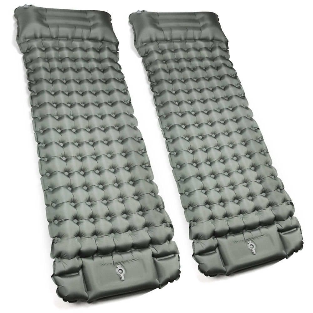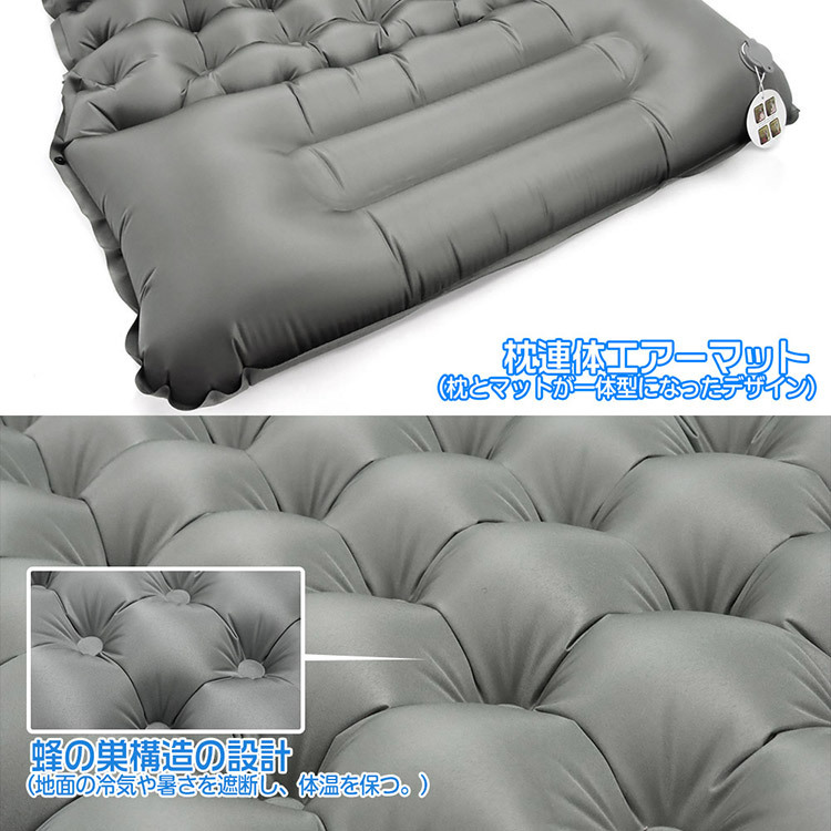 【2個セット】アウトドアキャンプ マット 波形200×66×10cm TPU素材足踏み式充気 無限連結可能 エアーマット コンパクト収納可能 グレー