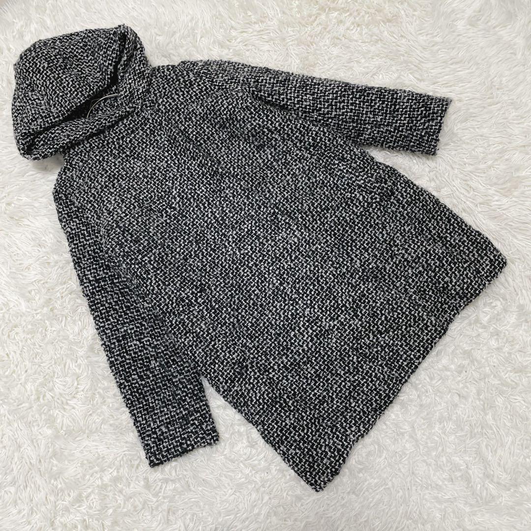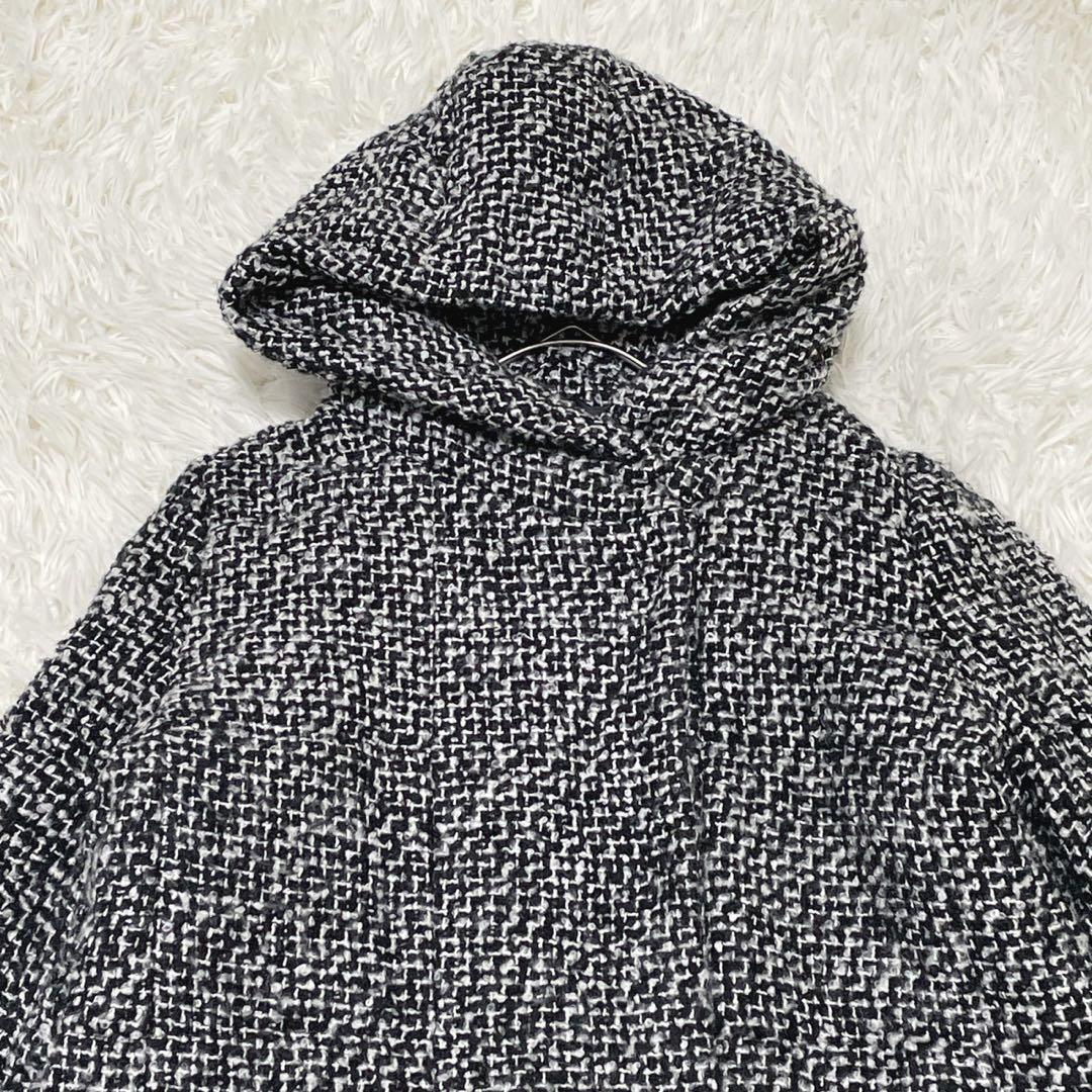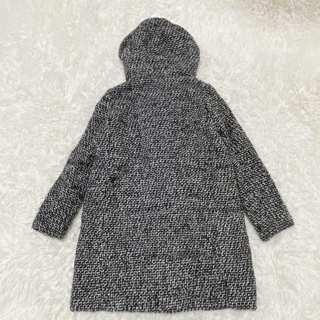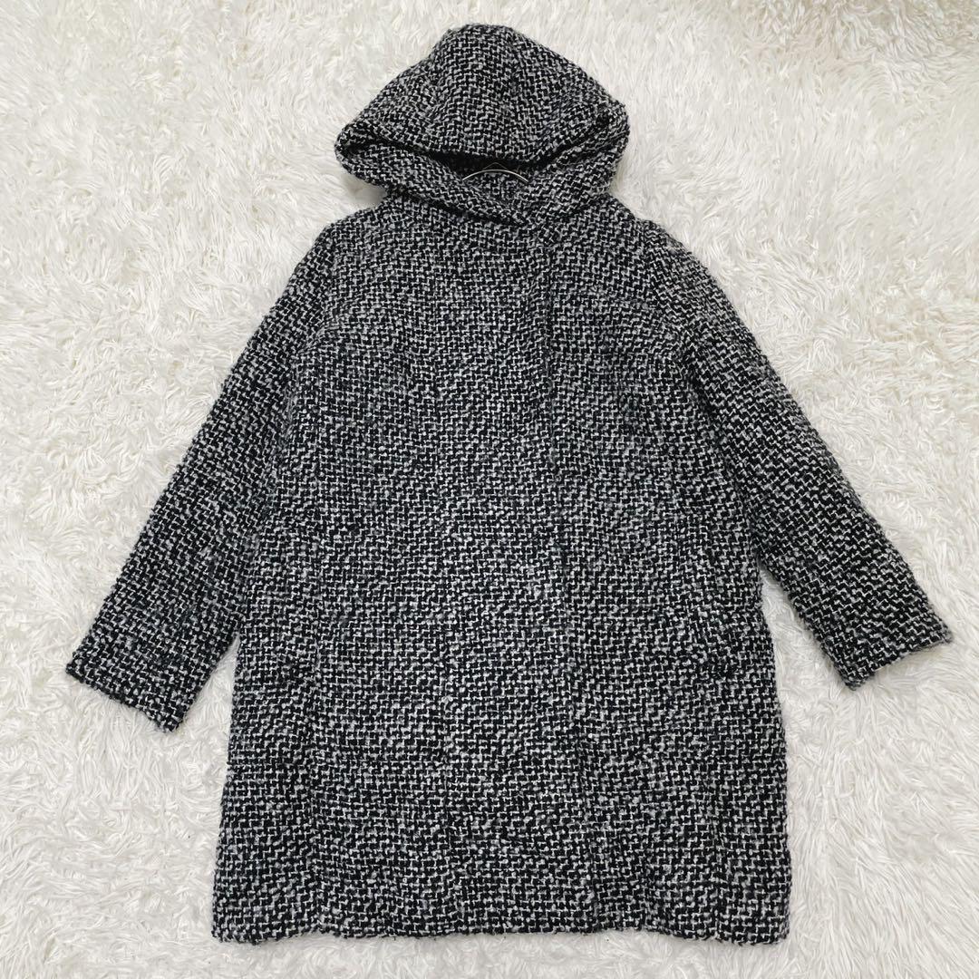 GU (XL) 中綿ツイードコート フード ミドル丈 ミックスカラー ウール混
