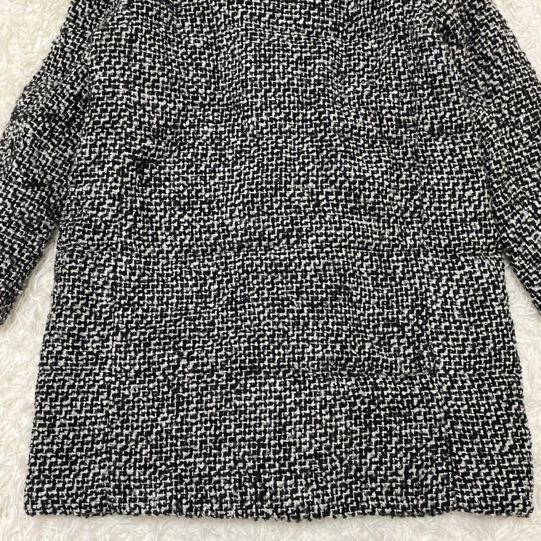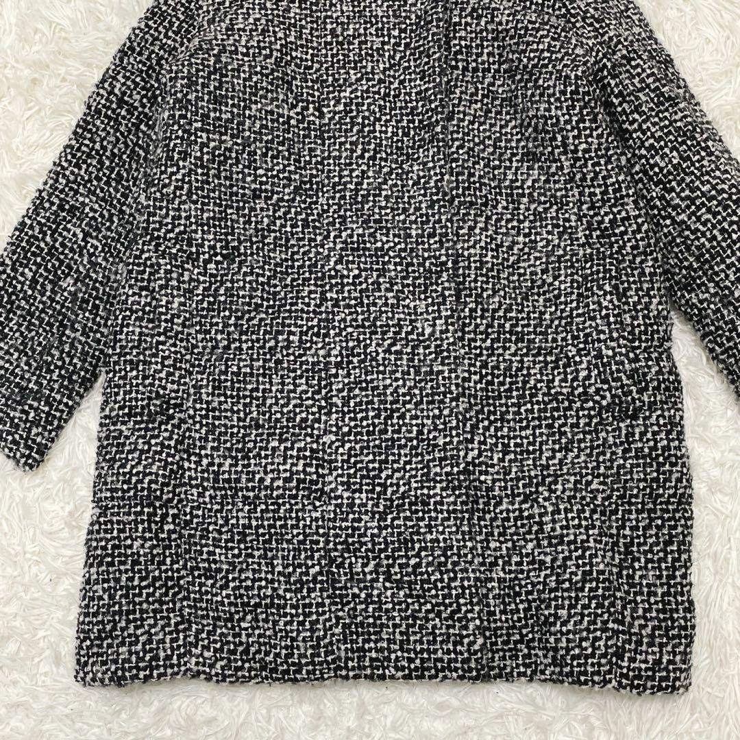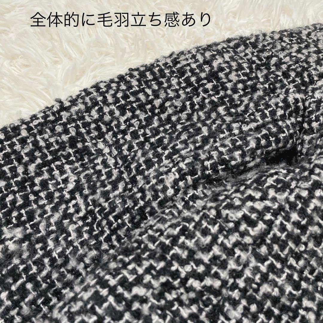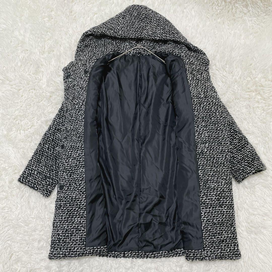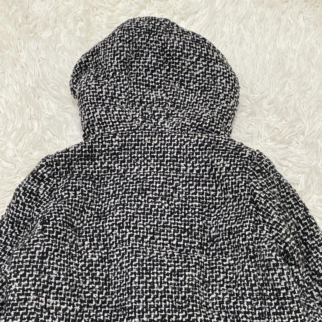 GU (XL) 中綿ツイードコート フード ミドル丈 ミックスカラー ウール混