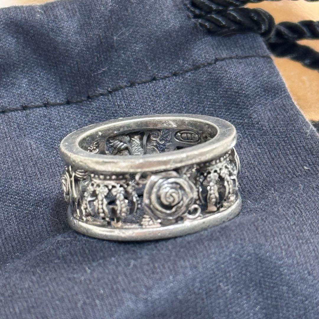 クラウンとローズのモチーフが繊細に施されたデザインで、存在感がありながらも品のある仕上がりです。