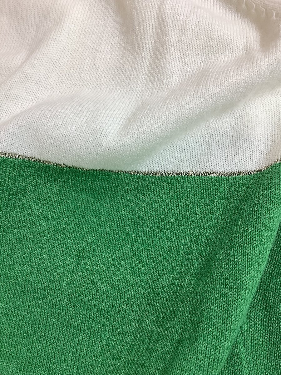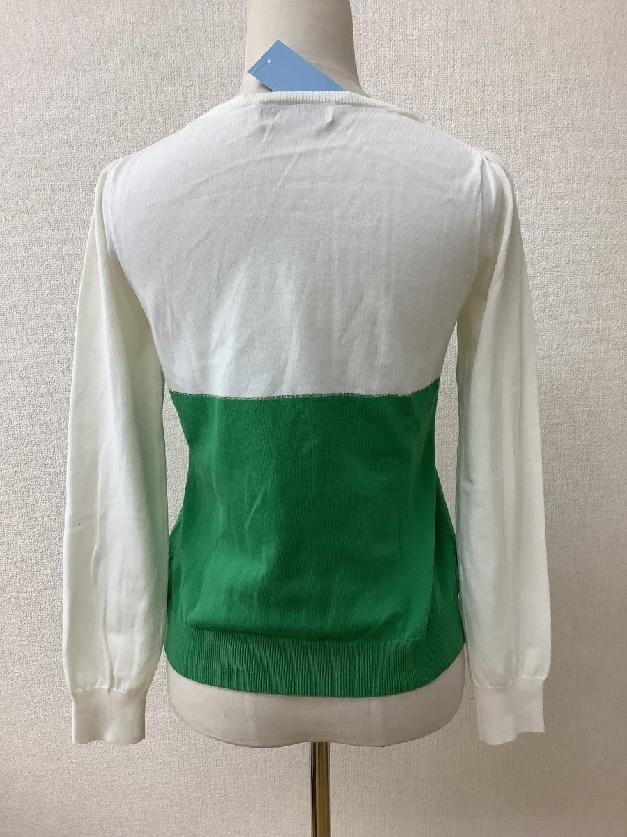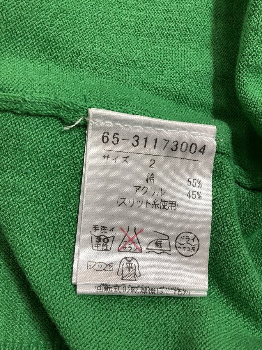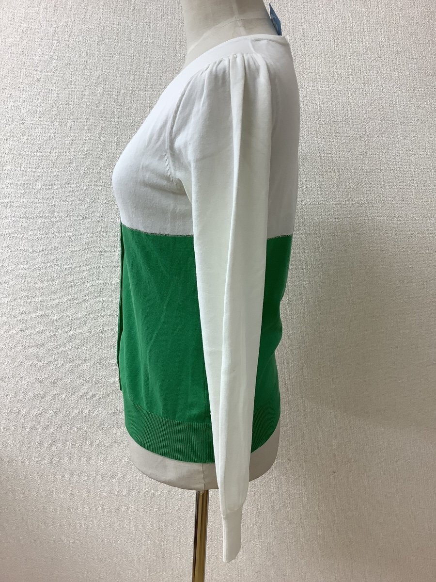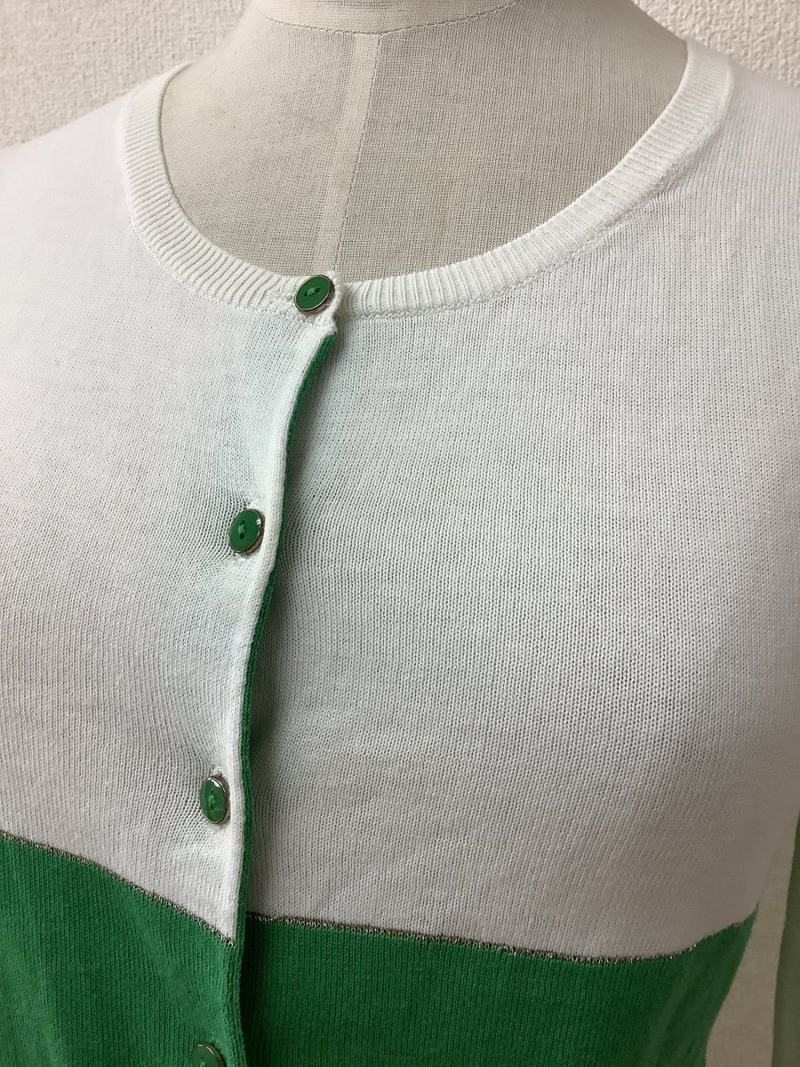 | 管理番号:10^137738 クリアインプレッション オフホワイトとグリーン バイカラーカーディガン 表示サイズ:2 実寸(参考)