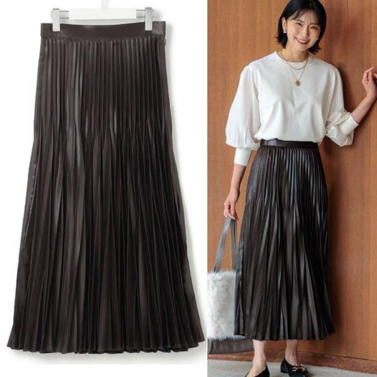 23区【杏さん着用/洗える】レザーライクプリーツ スカート 茶系38(Mサイズ)新品 ダークブラウン