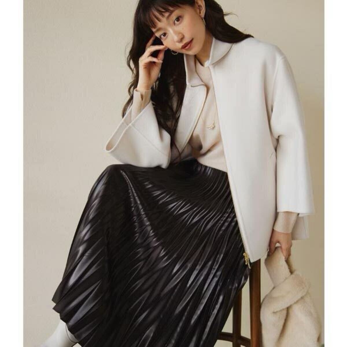 23区の【杏さん着用/洗える】レザーライクプリーツ スカートです。