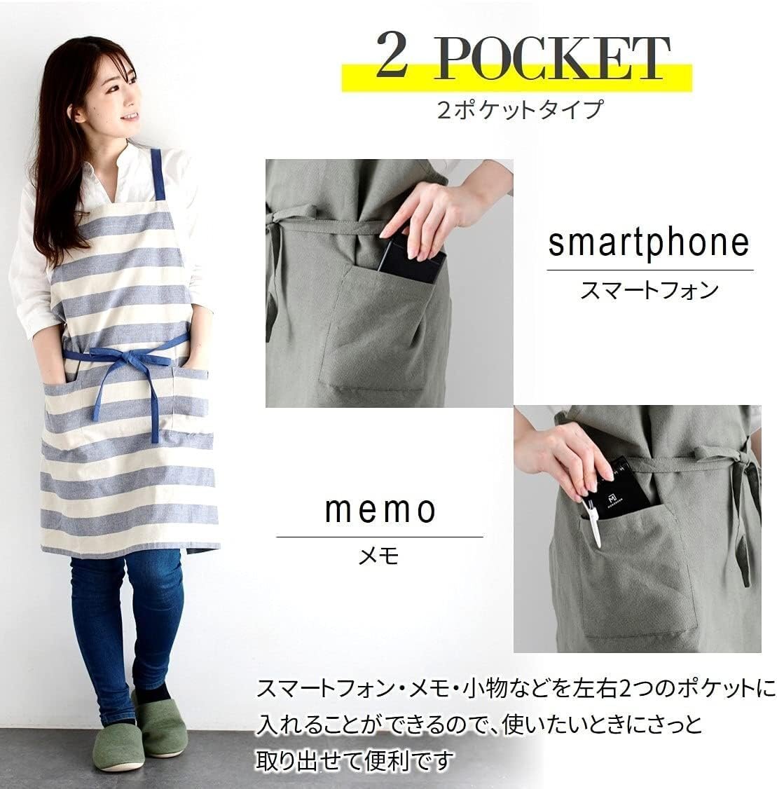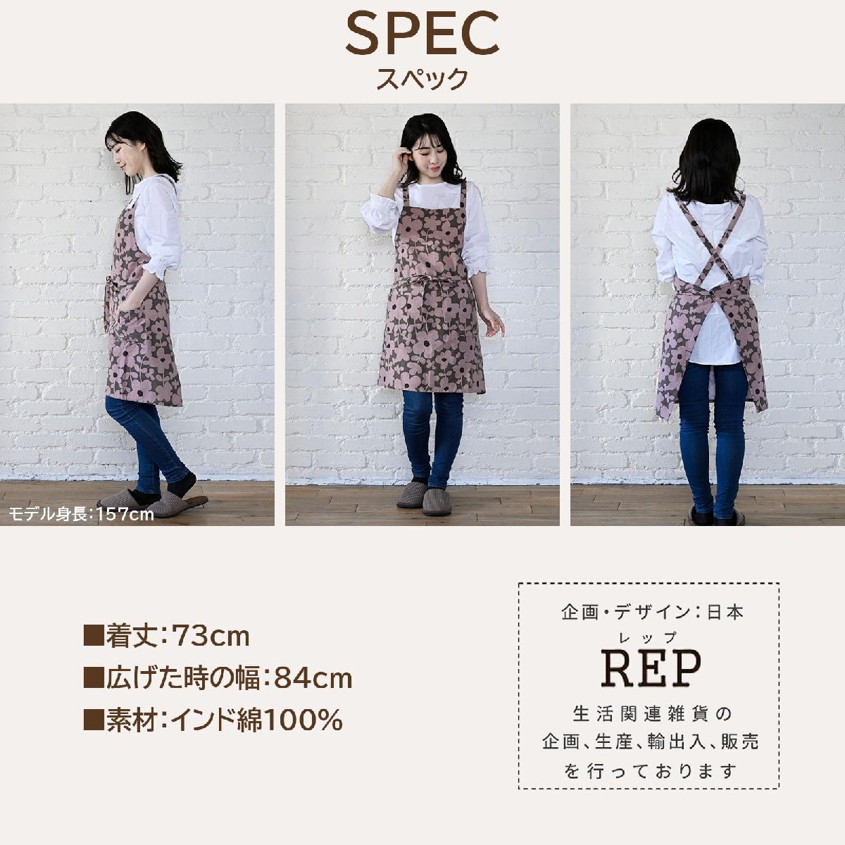 【5つの魅力】■しっかり結べる前結びタイプ:身長や体型を気にせず着やすくなっています■調節可能なすっきり肩紐:後ろのボタンで2段階に調節可能です■ポケット2か所:スマホや小物を入れてさっと取り出せます■調度いいサイズ感:長すぎず短すぎない着丈73cm■こだわり抜いた素材:インド綿100%使用。洗い替えに何枚あっても便利で、プレゼントにもオススメです。