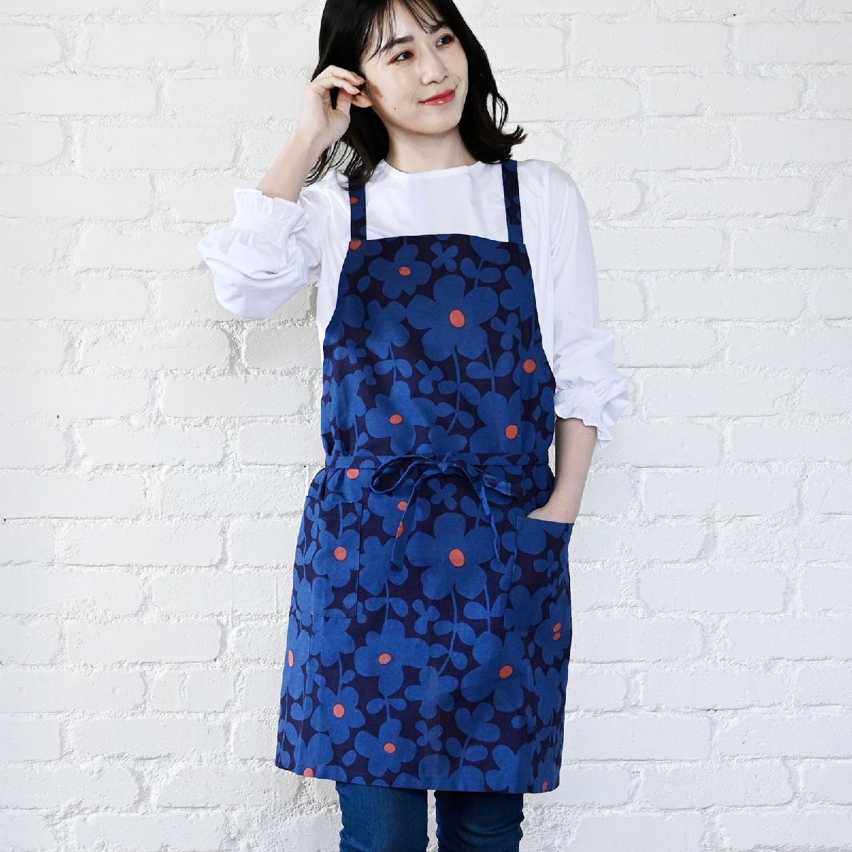 【在庫限りです】【在庫品のみ】554463-MAILNV花柄おしゃれ北欧レディースエプロンアビチュアルプレゼントポケット2個付き[レップ]