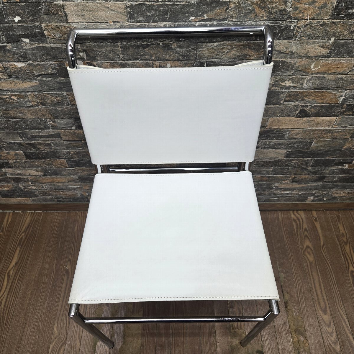 ◆◇25R097 アイリーン・グレイ ロクエブリューン デザイン家具 ダイニングチェア 1脚 本革 リプロダウト ホワイト 食卓椅子 お洒落♪◇◆