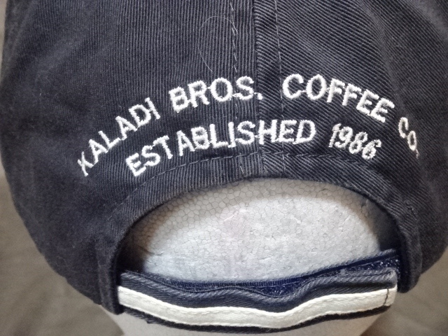 激レア USA購入 アメリカ企業モノ アラスカ州 コーヒーショップ 【KALADI BROS. COFFEE CO.】 ロゴ刺繍入り キャップ ネイビー 中古品